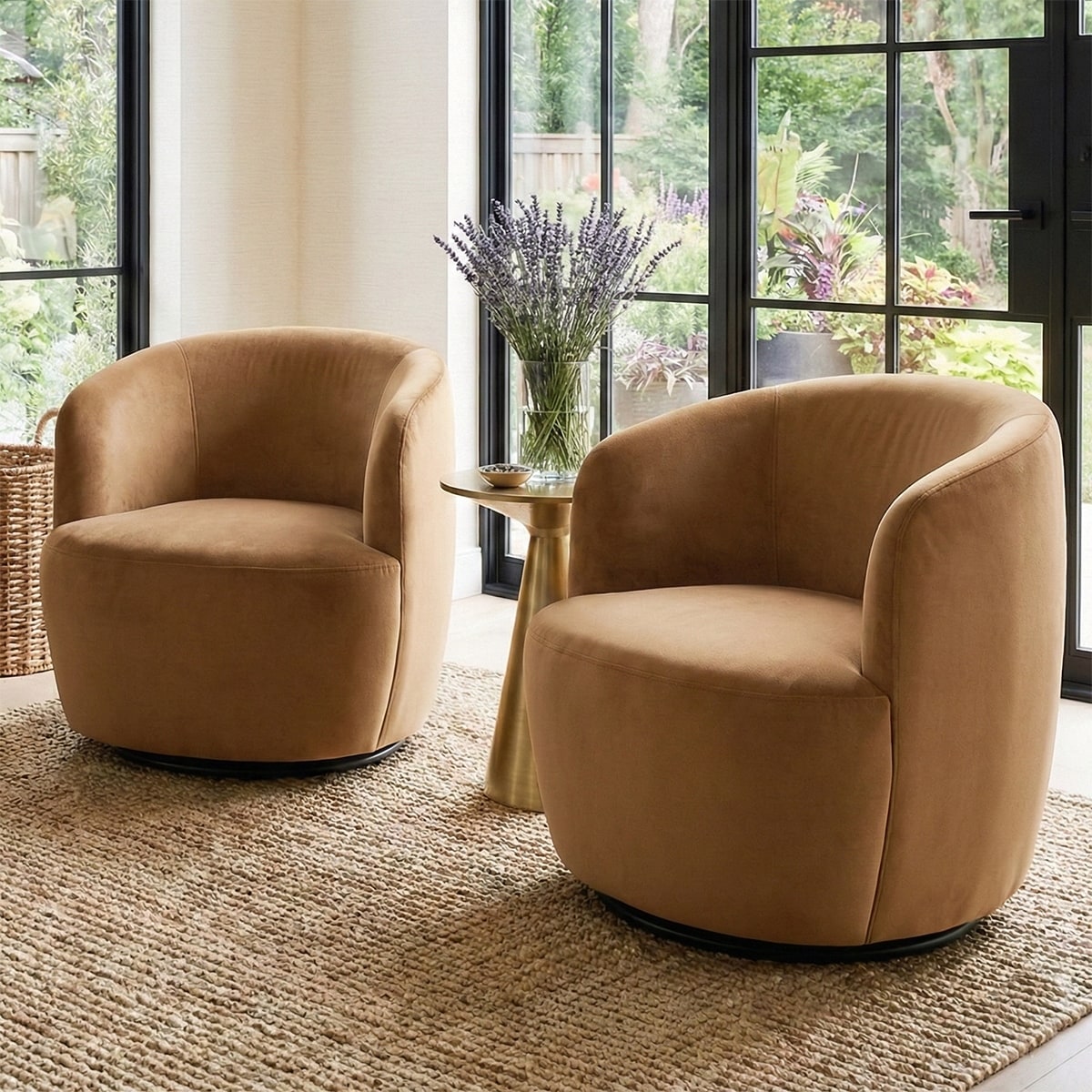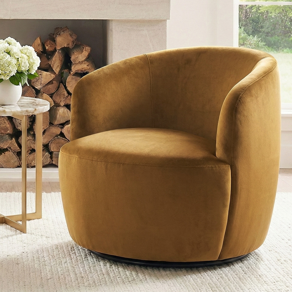 26.5" Wide Velvet Small Swivel Barrel Accent Chair