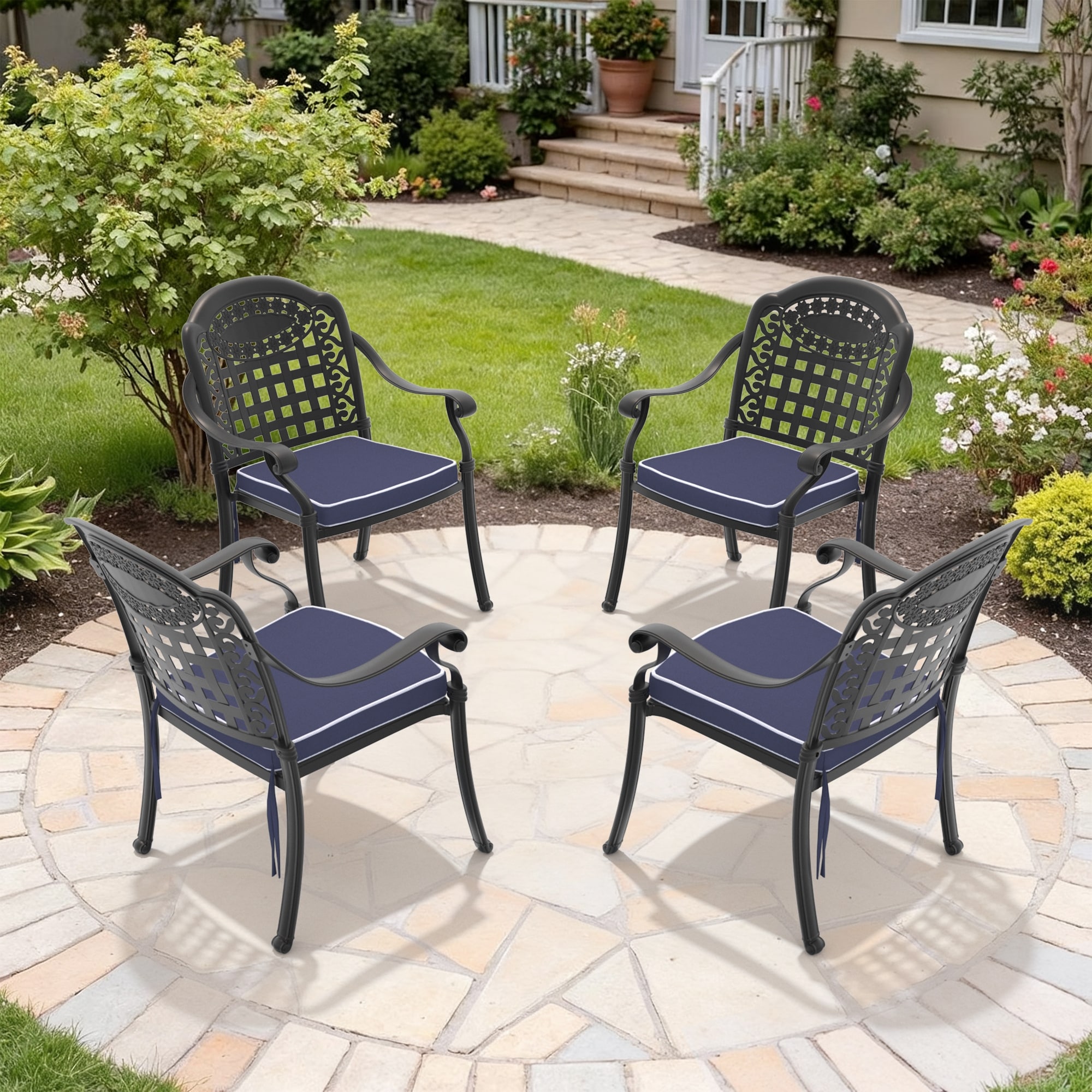 Cast Aluminum Patio Dining Chair 4PCS With Frame and Cushions