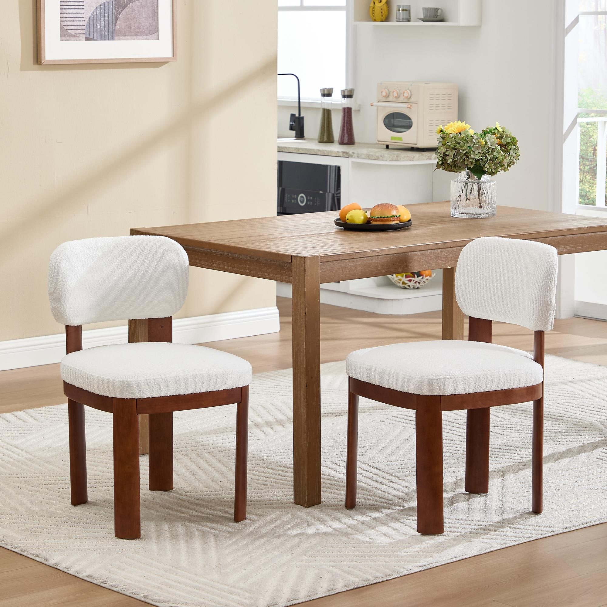 Wooden Dining Chairs Set of 2, Fabric Upholstered Kitchen Side Chairs, Armless Lounge Chair with Curved Backrest