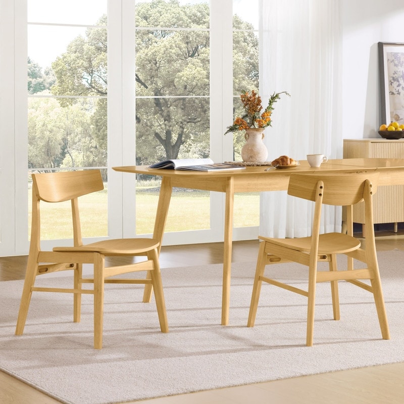 2-Piece Acacia Wood Dining Chair Set with Water-Resistant Cushions