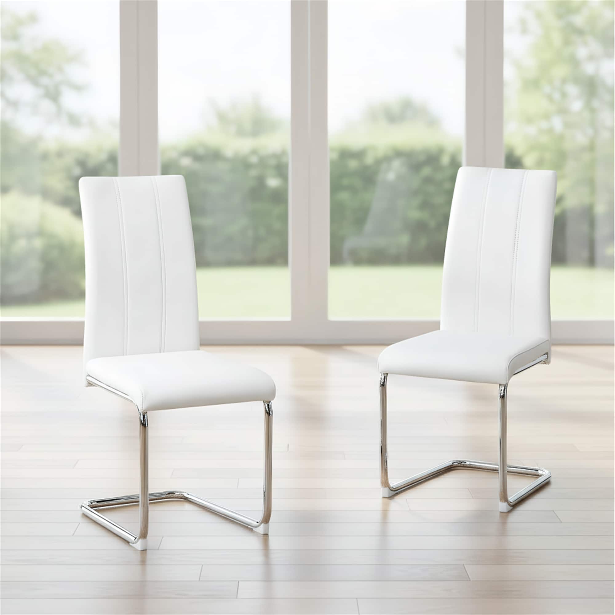 2-Pack White PU Upholstered Dining Chairs