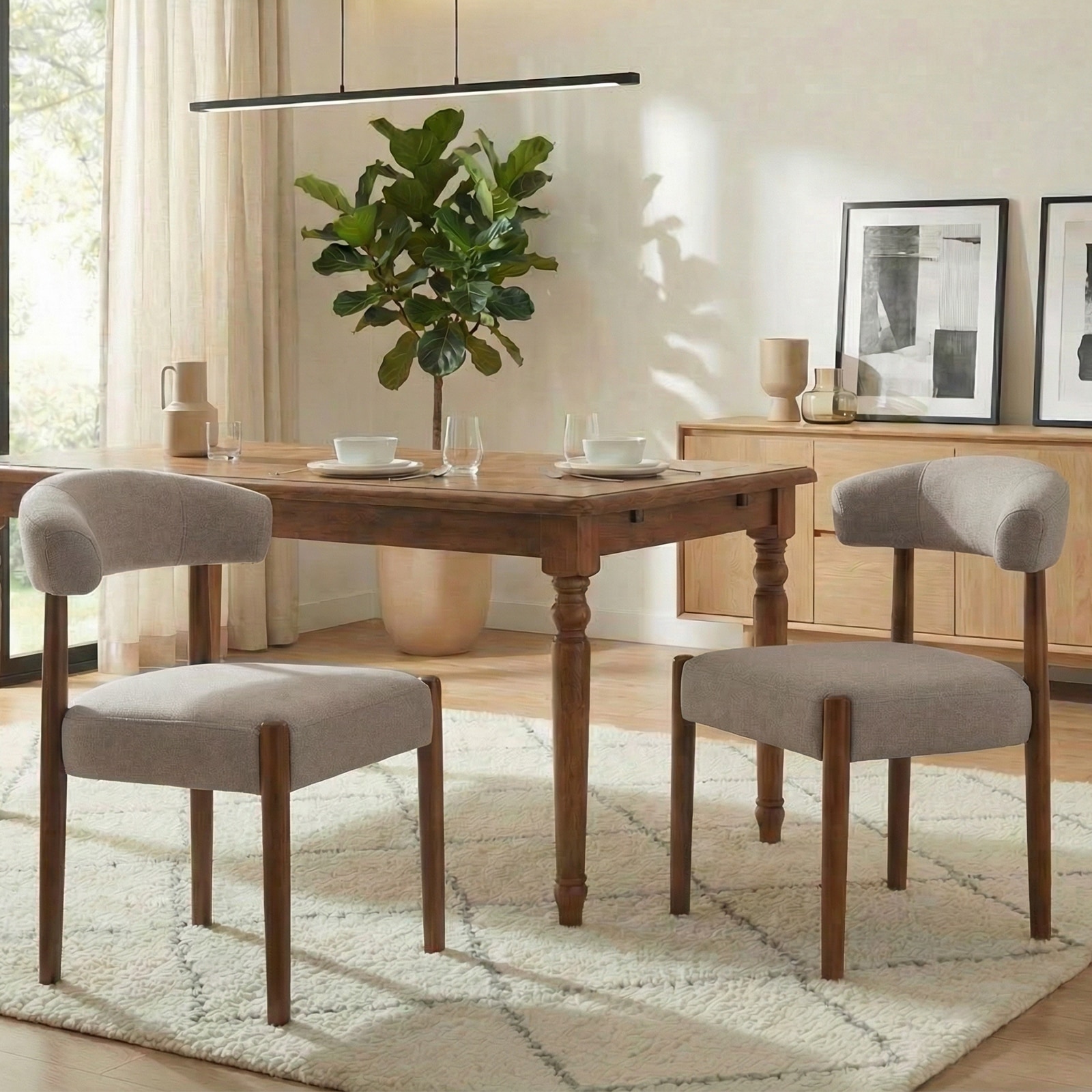 Wooden Dining Chairs Modern Upholstered Dining Room Chairs with Walnut Wood Legs