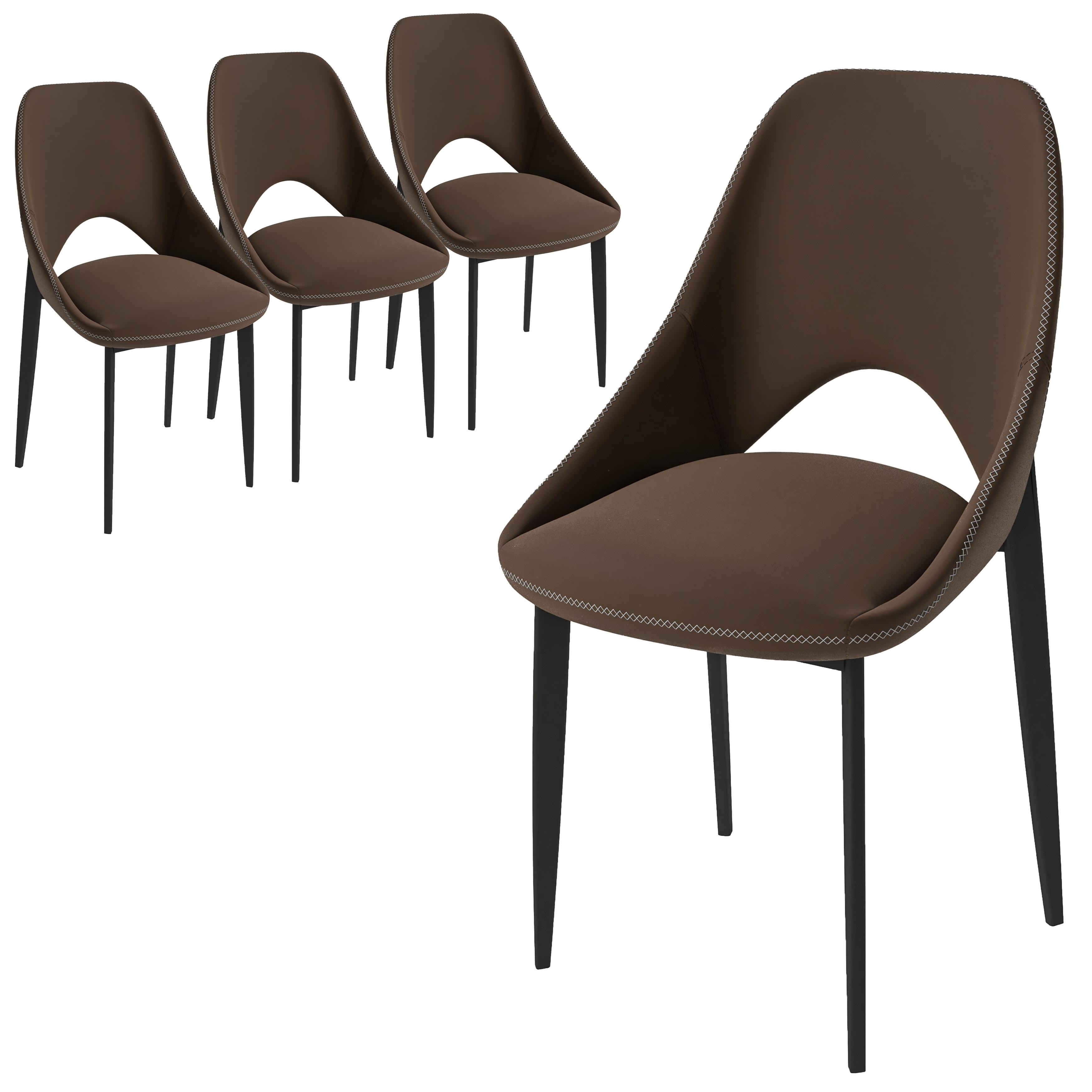 Amalfi Set of 4 Modern Fabric Upholstered Accent Dining Chairs with Curved Open Back and Metal Legs for Home or Apartment
