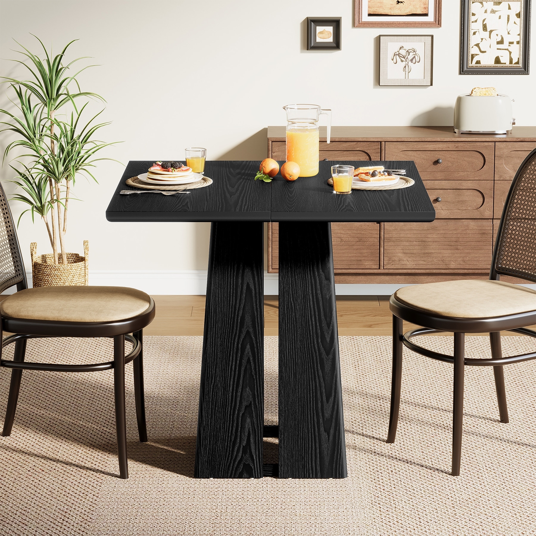 Modern Square Dining Table, Stretchable, with X-Shape Table Leg with Metal Base