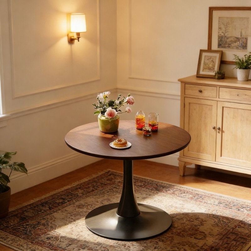 Round Table, 31.5" Modern Dining Table, Dining Table,MDF Top and Steel Base Tulip Round Kitchen Table,Kitchen Table - Walnut