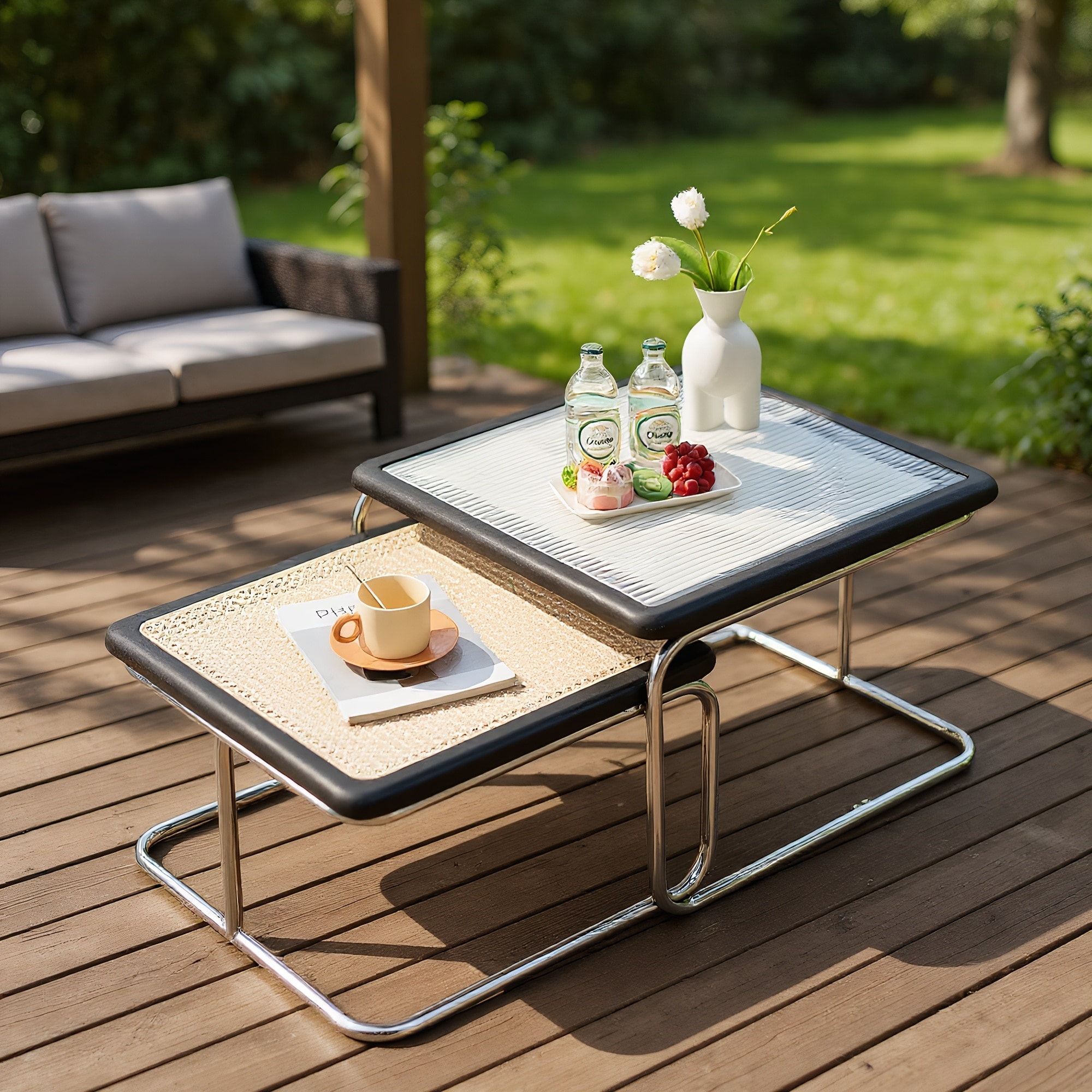 Modern Rattan & Glass Nesting Small Dining Table Black Coffee Tables
