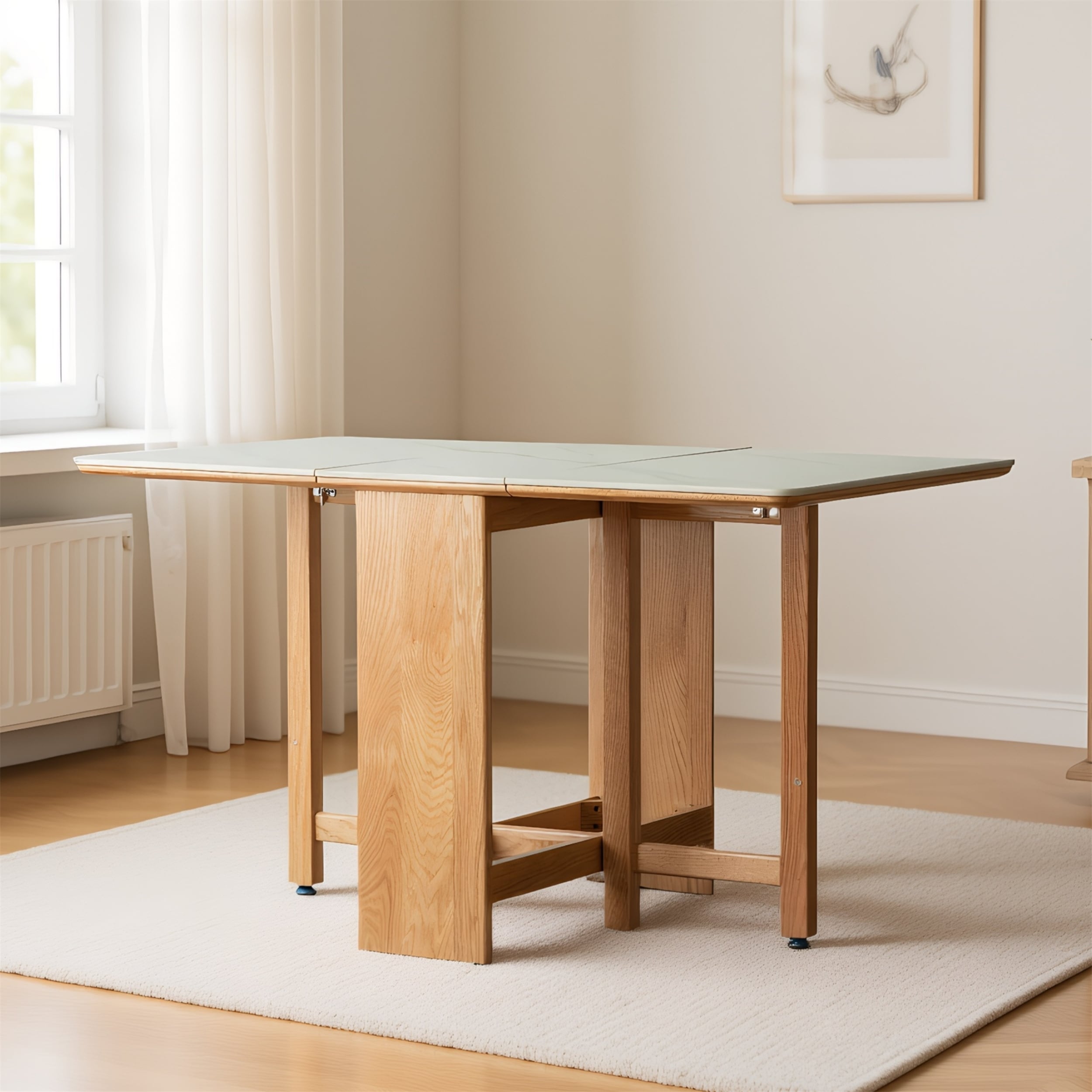 Modern Extendable Dining Table for 6, Solid Oak and Faux Rock Top