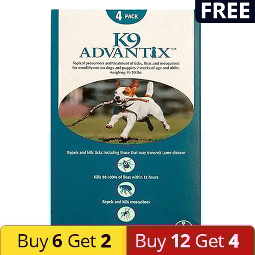 K9 Advantix Medium Dogs 11-20 Lbs (Aqua) 12 Doses + 4 Free