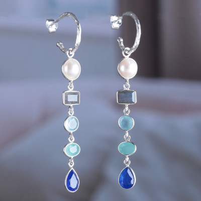 'Multi-Gemstone Silver Statement Half-Hoop Dangle Earrings'