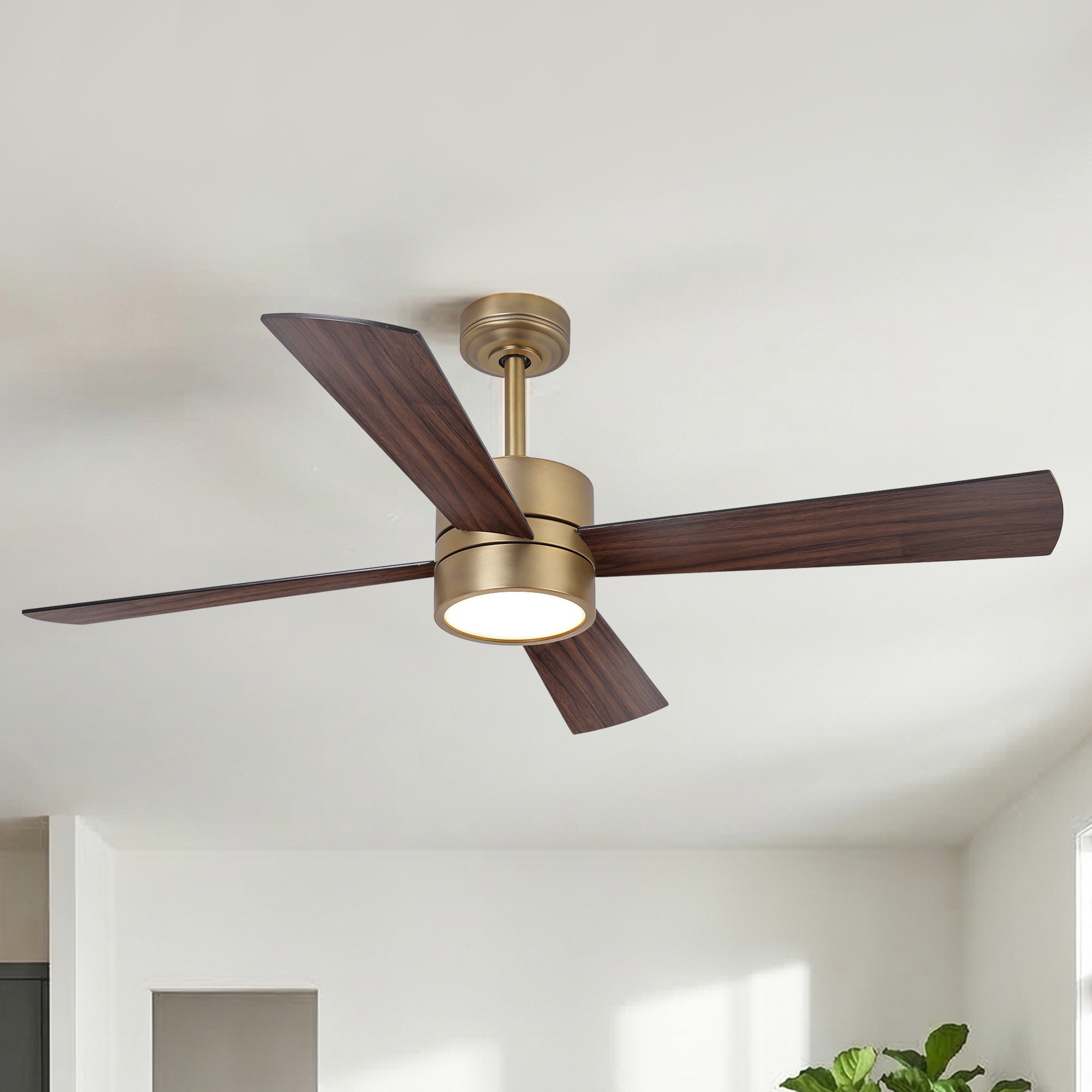 52" Modern Gold Integrated LED Dimmable Reversible Smart Ceiling Fan with RGB Light, Remote and APP Control