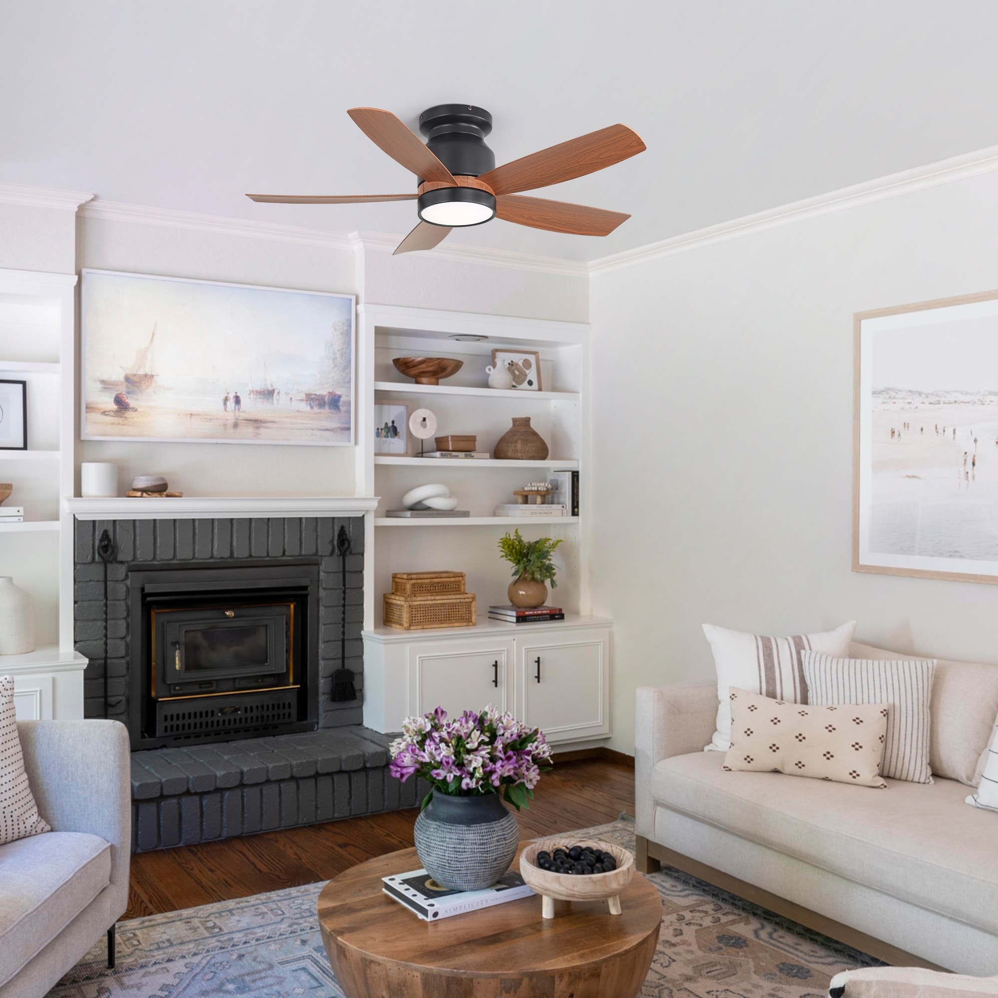 MLiAN 5 Solid Wood Blades Indoor Flush Mount Ceiling Fan with Remote