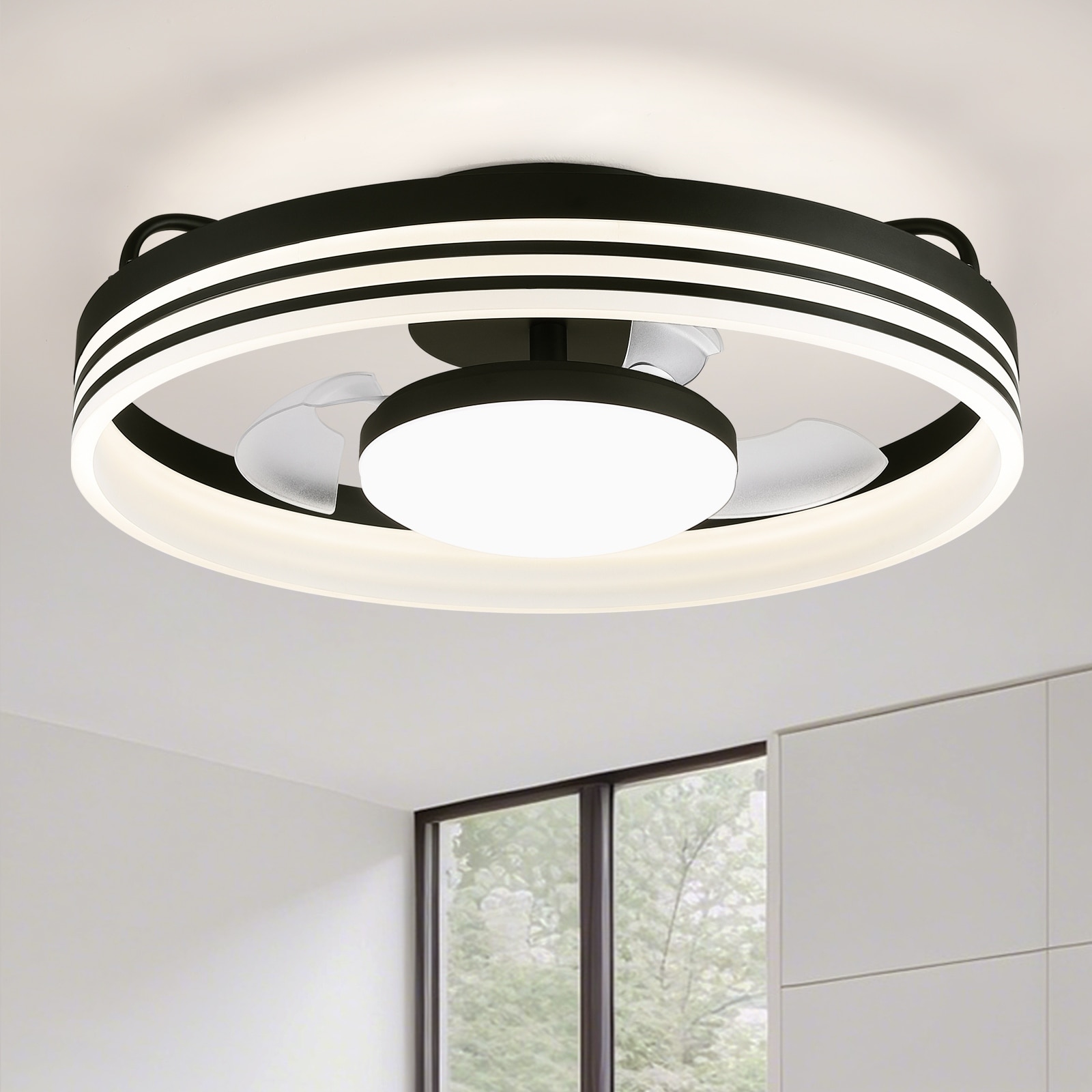 Oaks Aura 20in.Futuristic Modern Flush Mount Ceiling Fan with Light,6-Speed Low Profile Smart APP Control Ceiling Fan w/ Remote