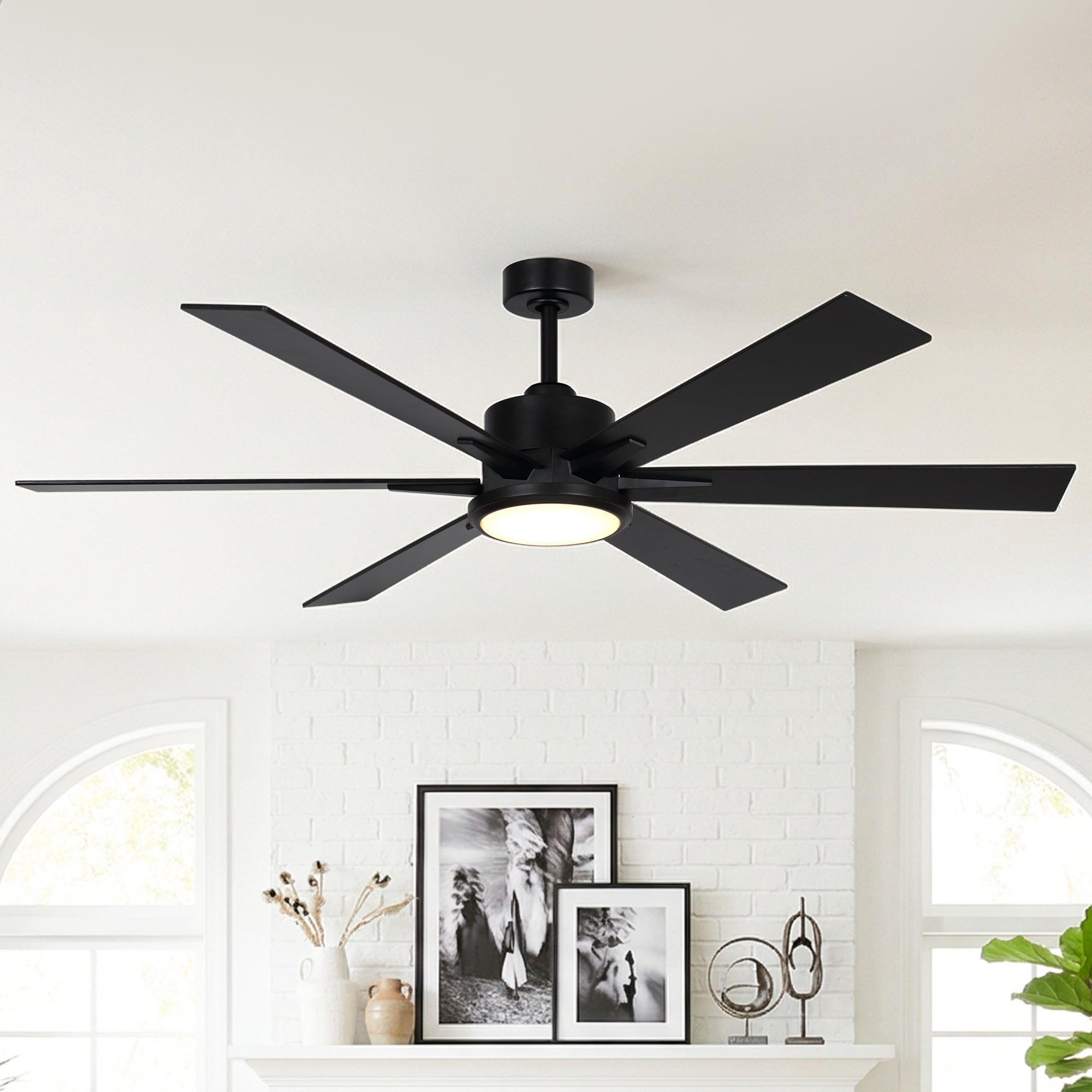 65-inch Modern Black Large Dimmable Ceiling Fan with LED Light and Remote - 65" W x 13.3" H/16.3" H