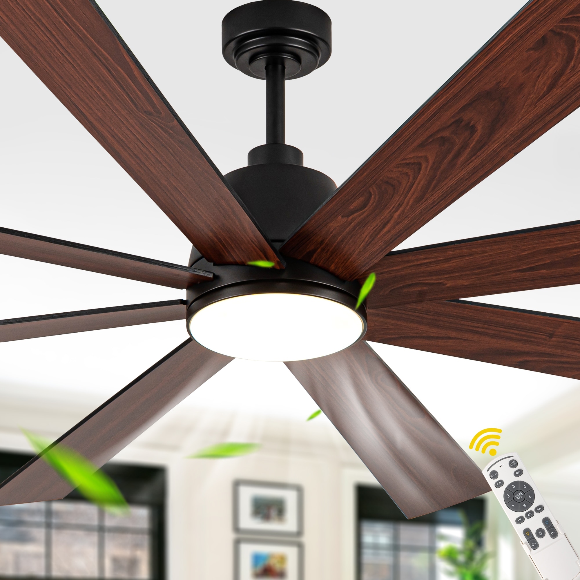 Chichoice 72" Modern Black Ceiling Fan with LED Light Kit and Remote, 6-Speed Quiet DC Motor, Reversible for Large Living Rooms