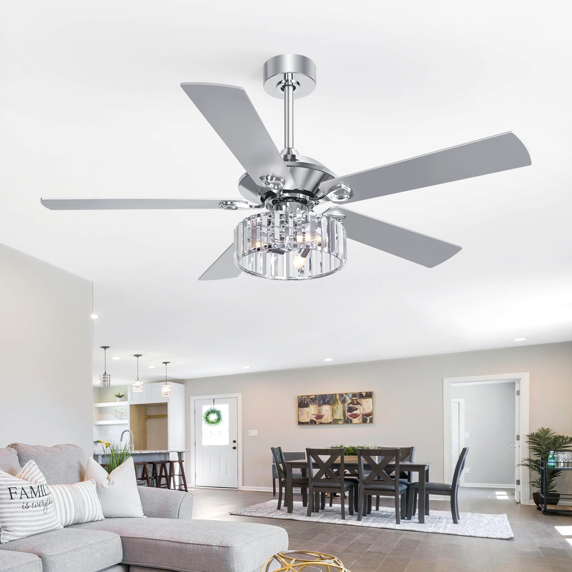 52 IN Chrome 5-Blade Ceiling Fan with Light Kit and Remote