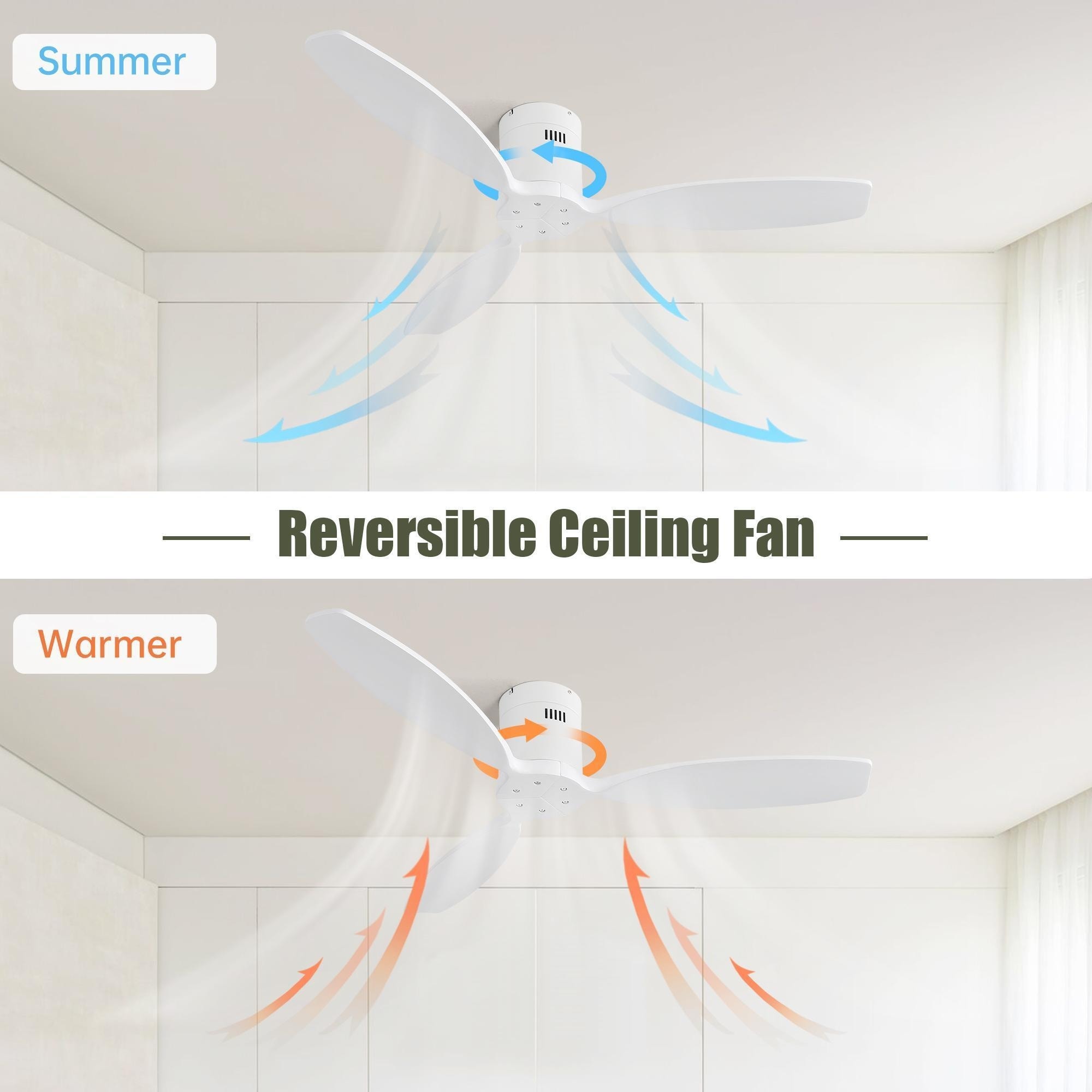 42" Flush Mount Ceiling Fan Without Light, 3 Reversible Blades, 6 Speeds Reversible Dc Motor,Low Profile Ceiling Fan No Light