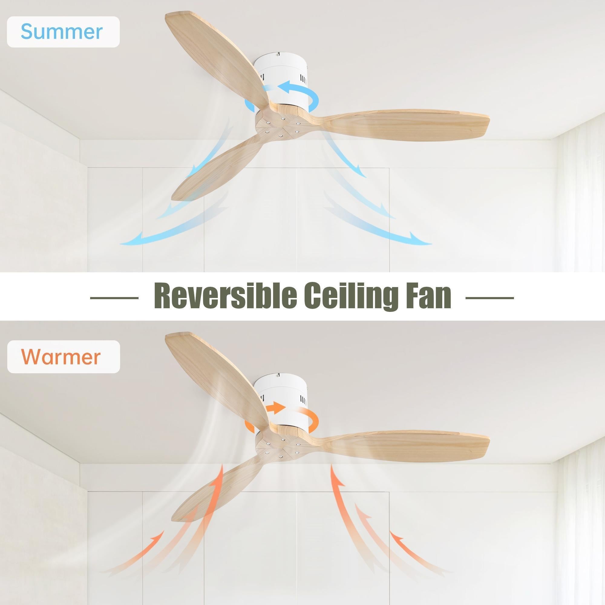 52 Inch Modern 3 Solid Wood Blade Ceiling Fan Noiseless Reversible DC Motor