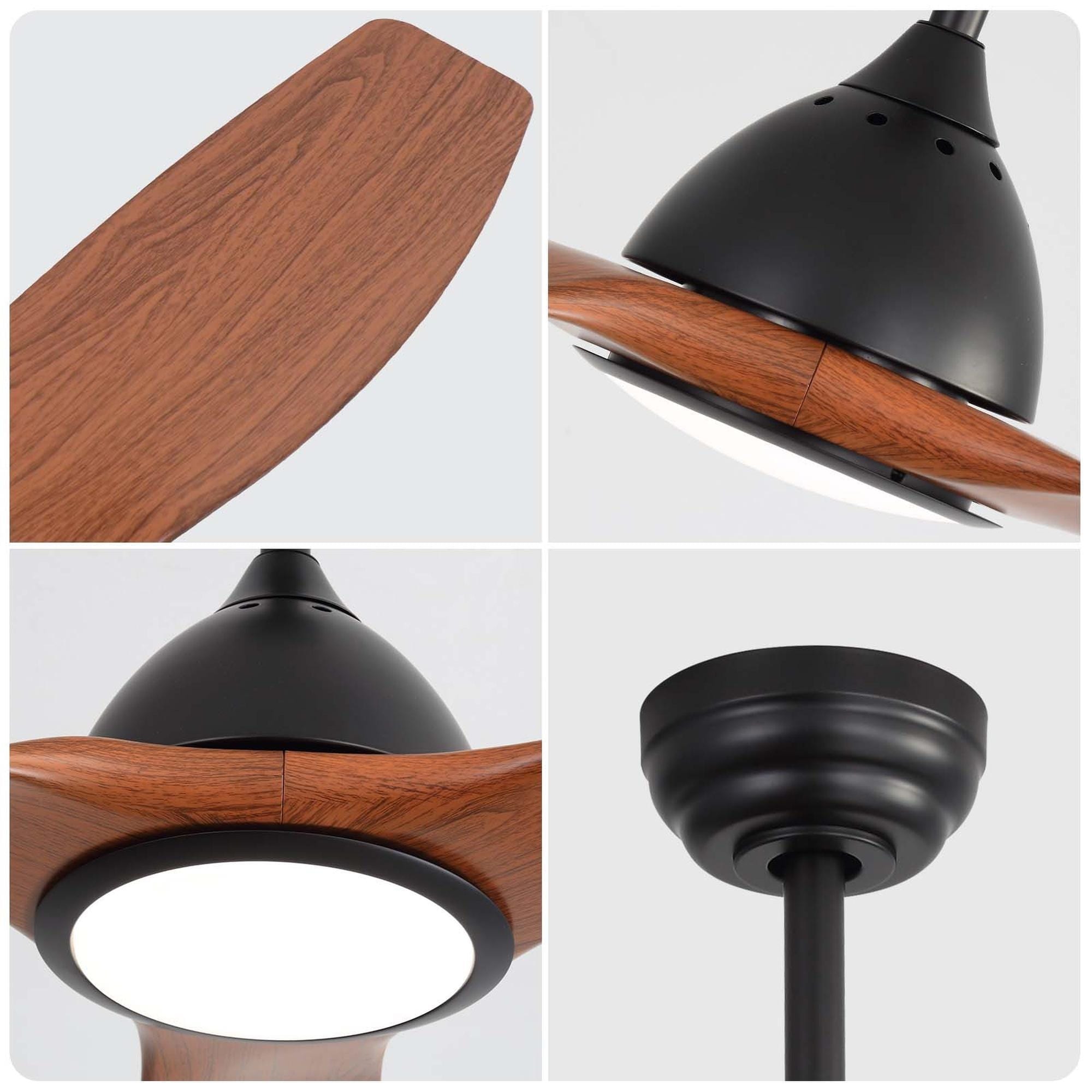 New Model 60 Inch Ceiling Fan With 18W Led Light 3 Solid Wood Blades Remote Control Reversible Dc Motor For Home - 60inch
