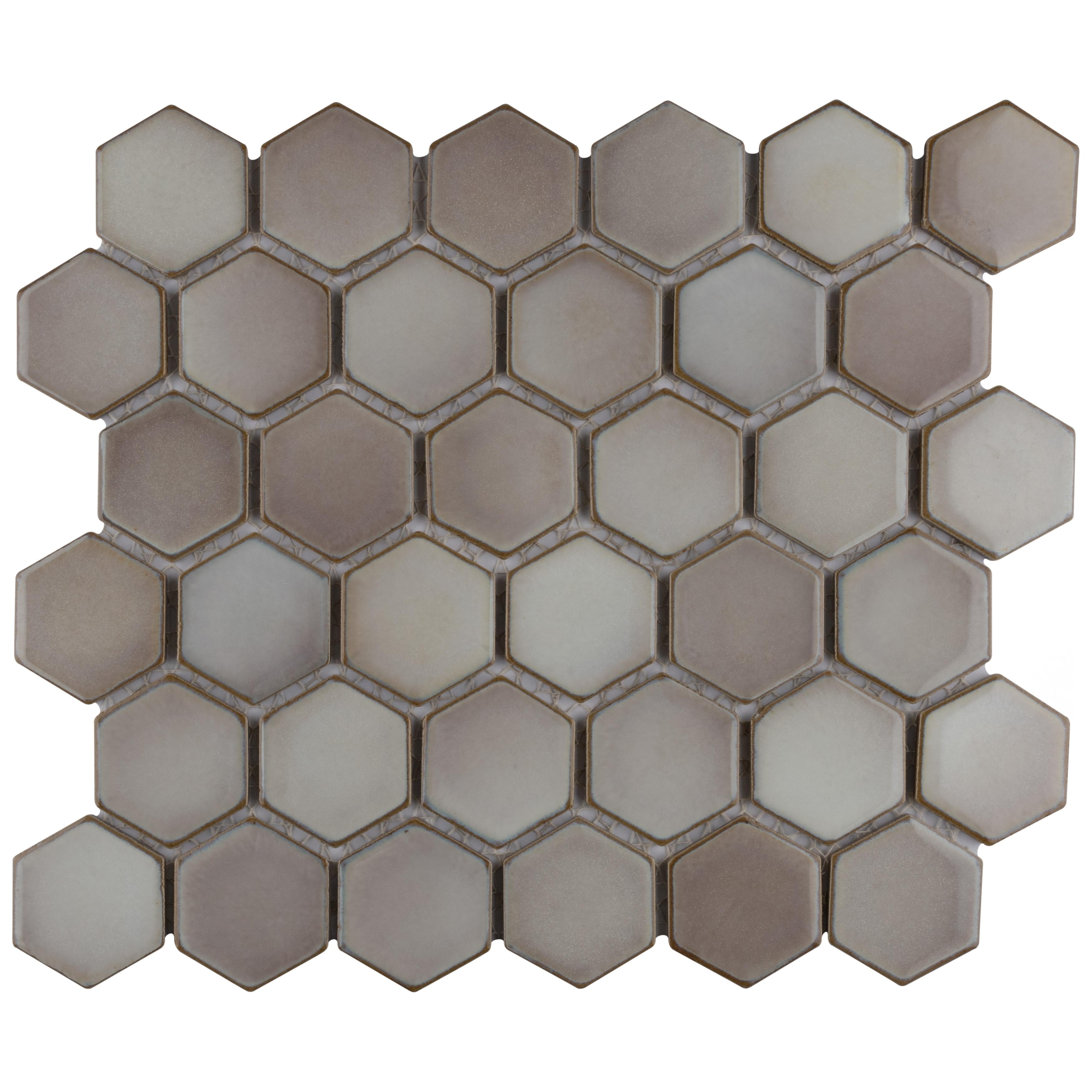 Merola Tile Hudson Due 2" Hex Dove Grey 10-7/8" x 12-5/8" Porcelain Mosaic Floor and Wall Tile