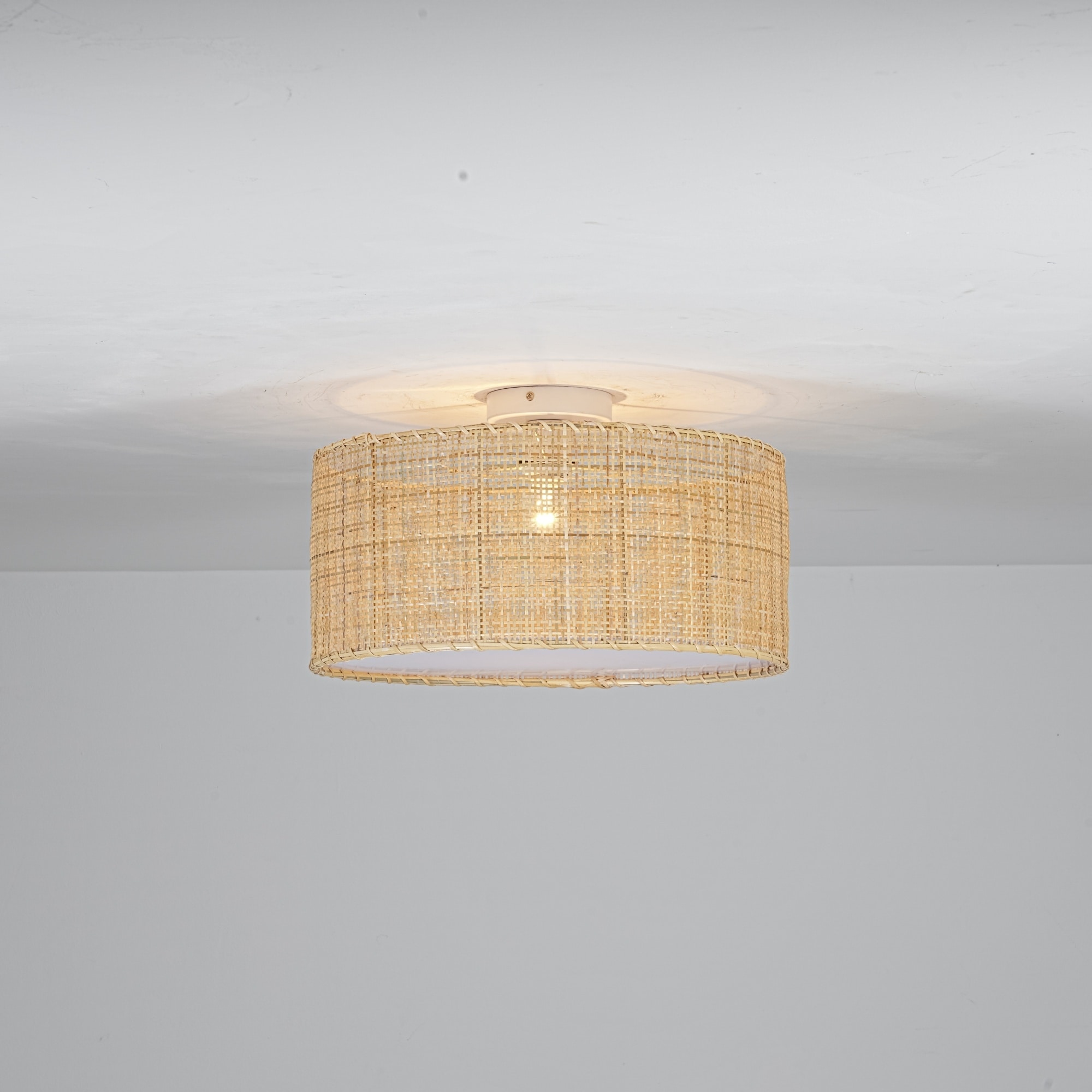 17.7" Boho Coastal Hand-Woven Natural Rattan with Matte White Hardware Semi-Flush Mount Ceiling light for Hallways