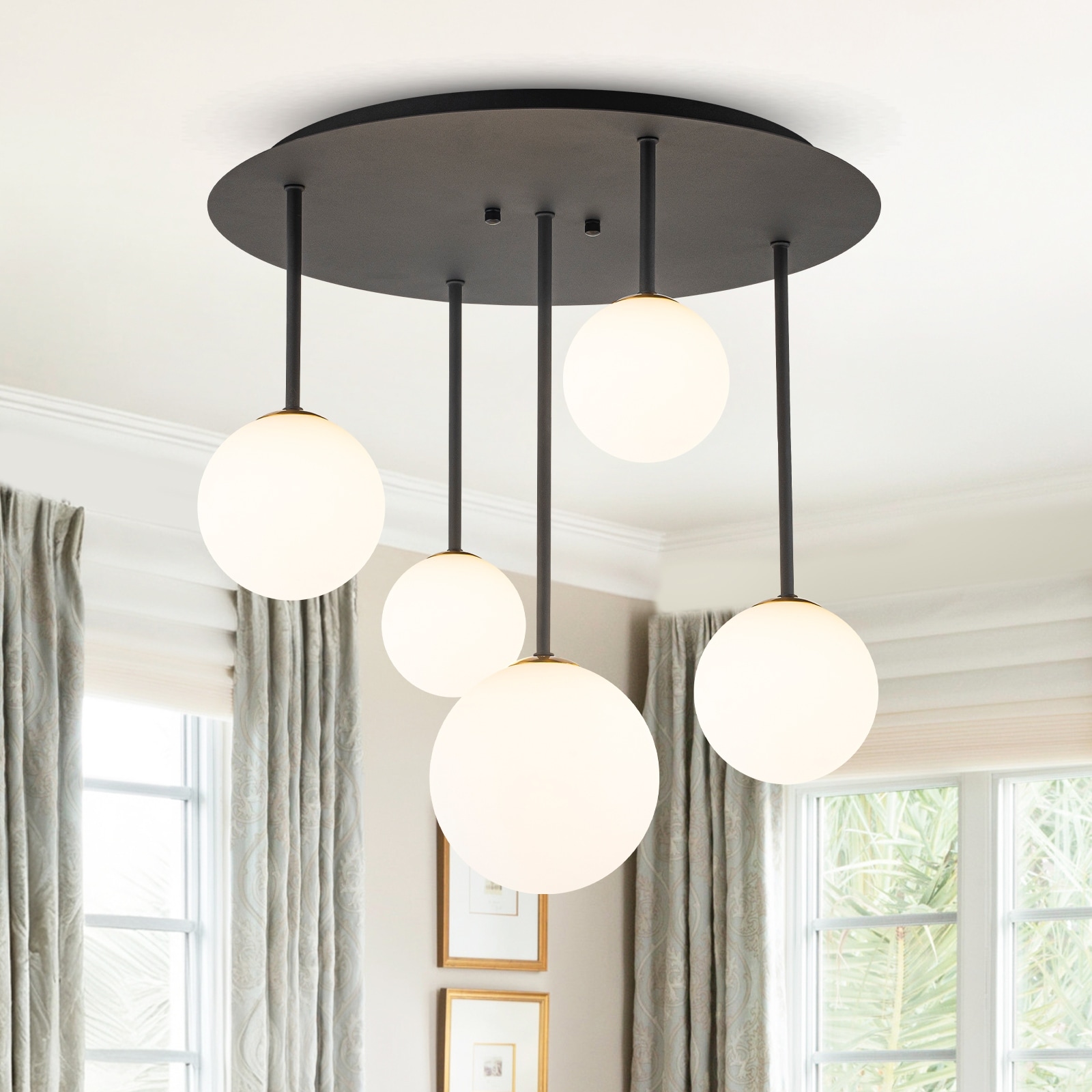 5 Light Branch Semi-Flush Mount Lighting with Milky White Glass Globes