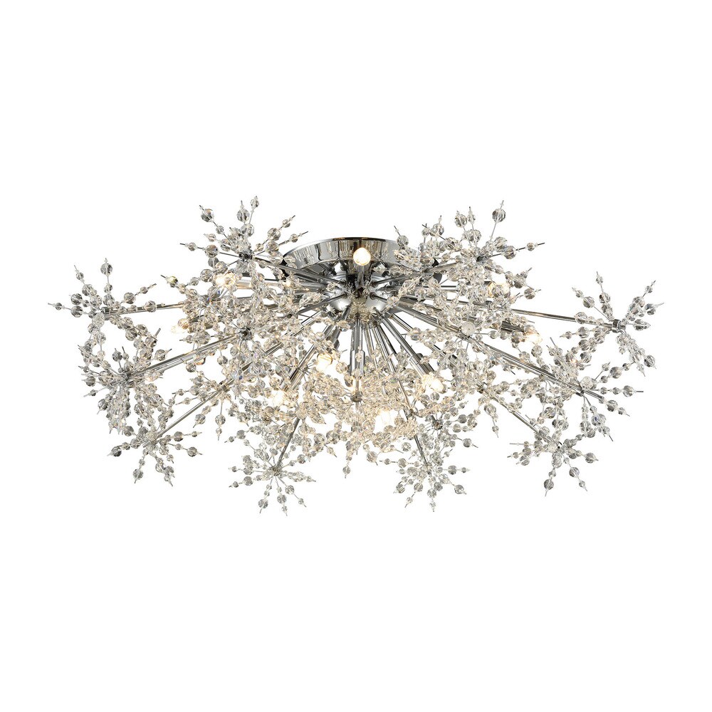Elk Home Snowburst Chrome With Crystal Beads 13 Light Semi Flush