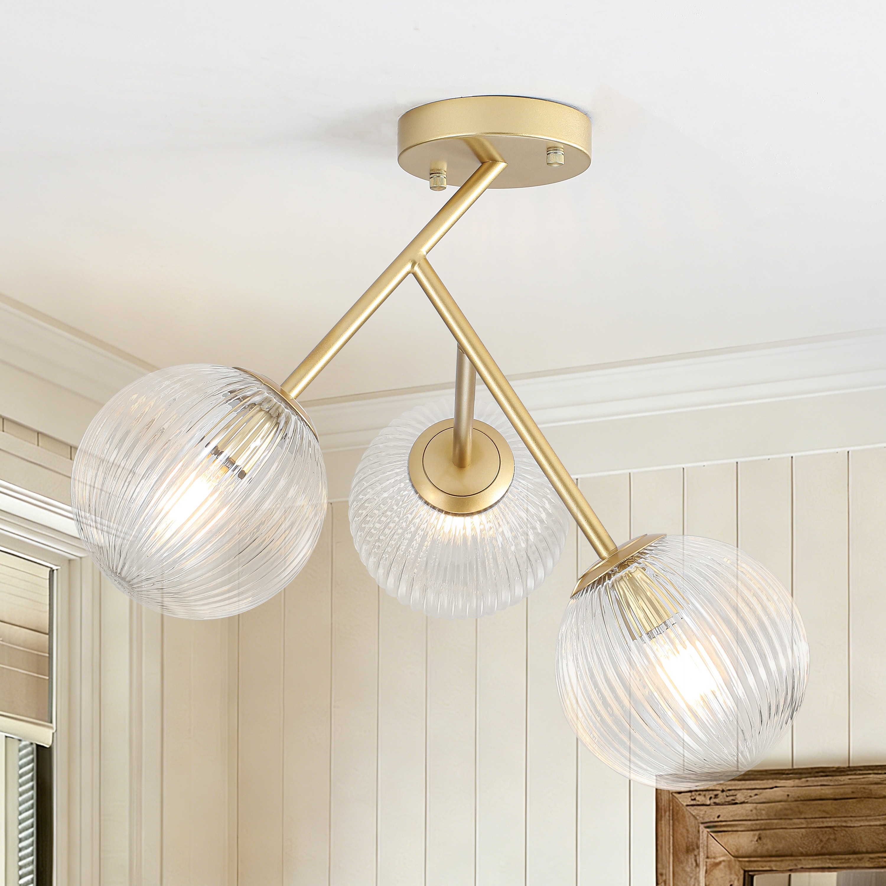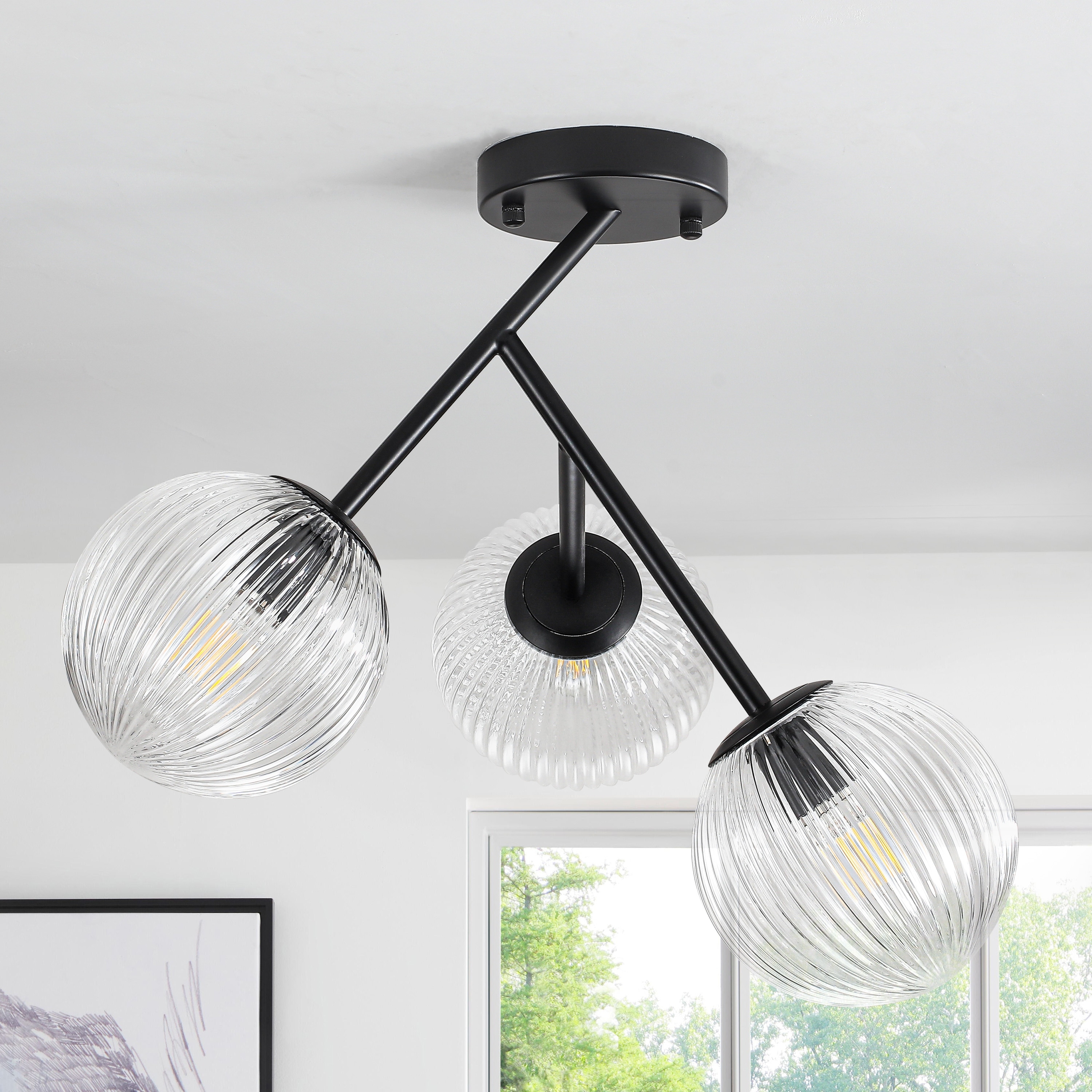 Modern 3-Light Semi-Flush Mount Light with Ribbed Glass Shades