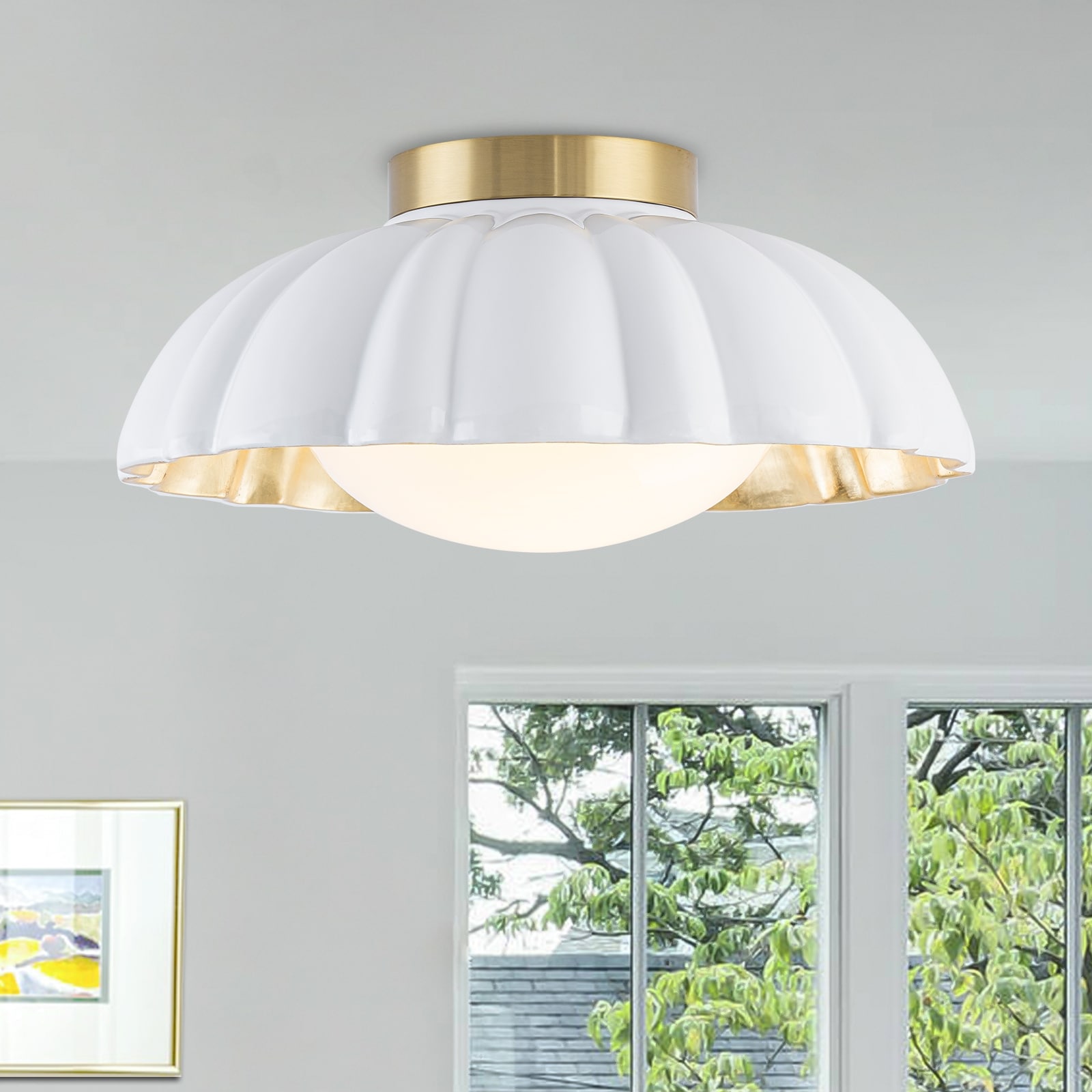 Dome Milky White Shade Flush Mount Ceiling Light with Gold Foil Interior - Dia.13.58-in