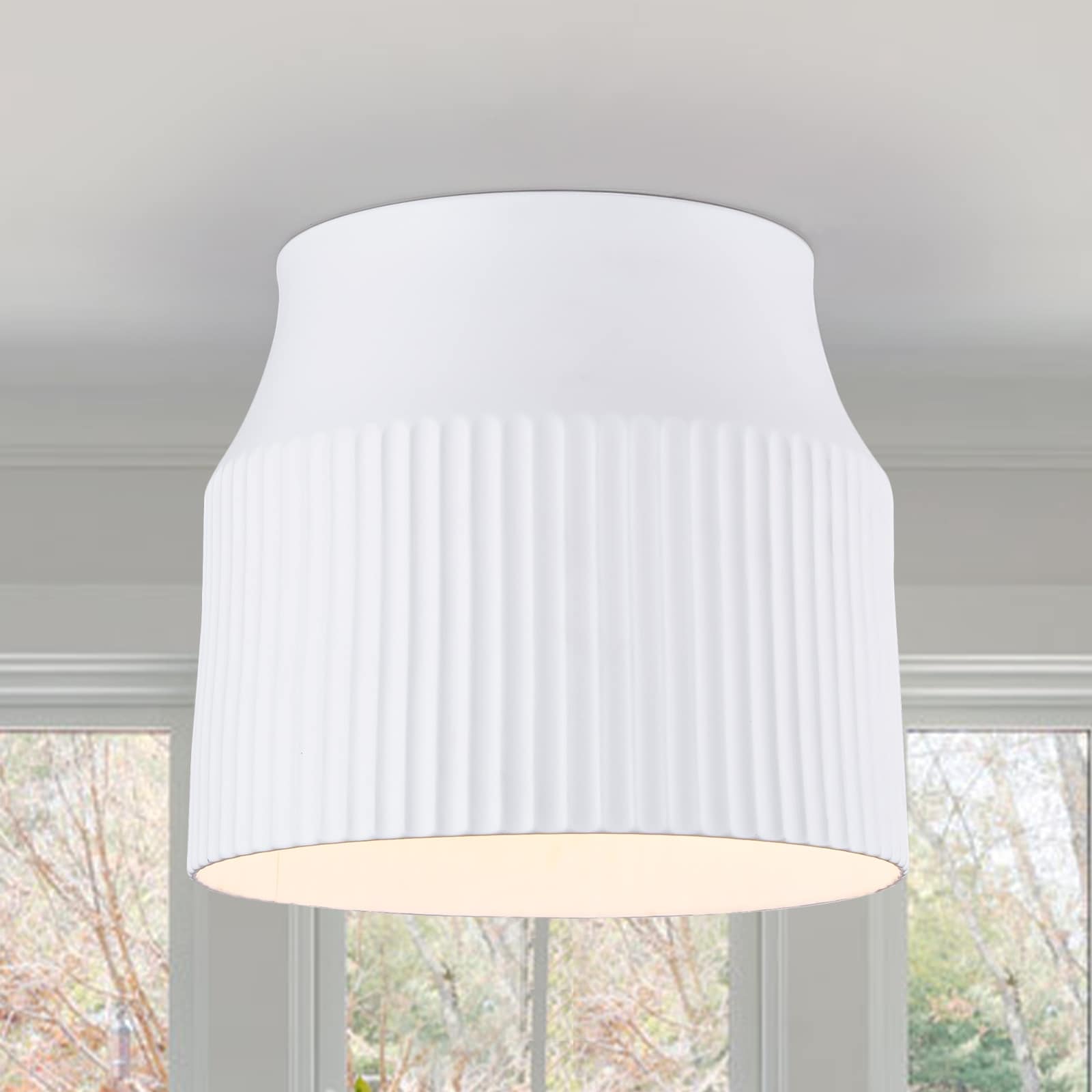 1-Light Matte White Flush Mount Ceiling Light with Ceramic Drum Shade - Dia.9.45-in