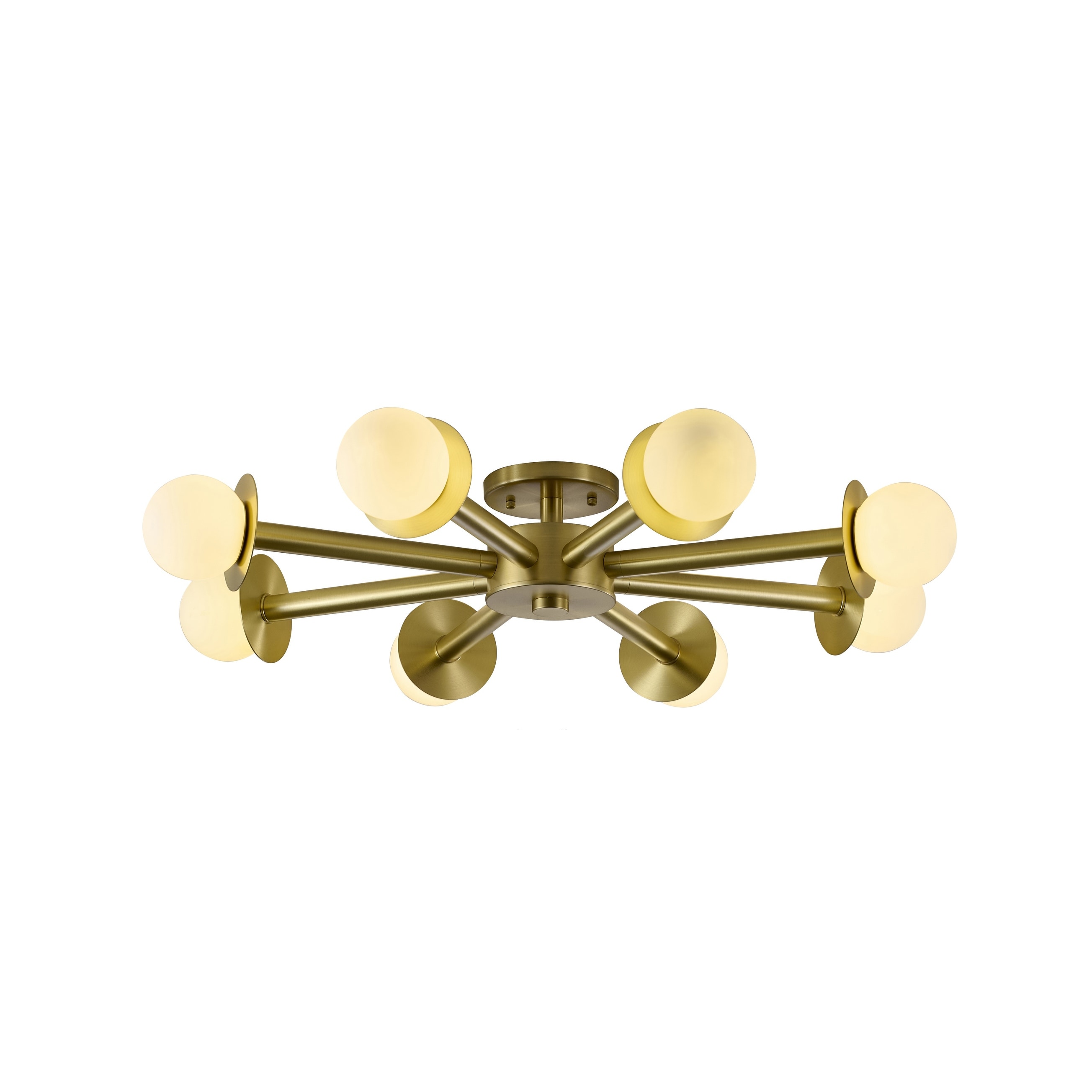 8-Light Satin Brass Flush Mount With White Glass Globe Shades