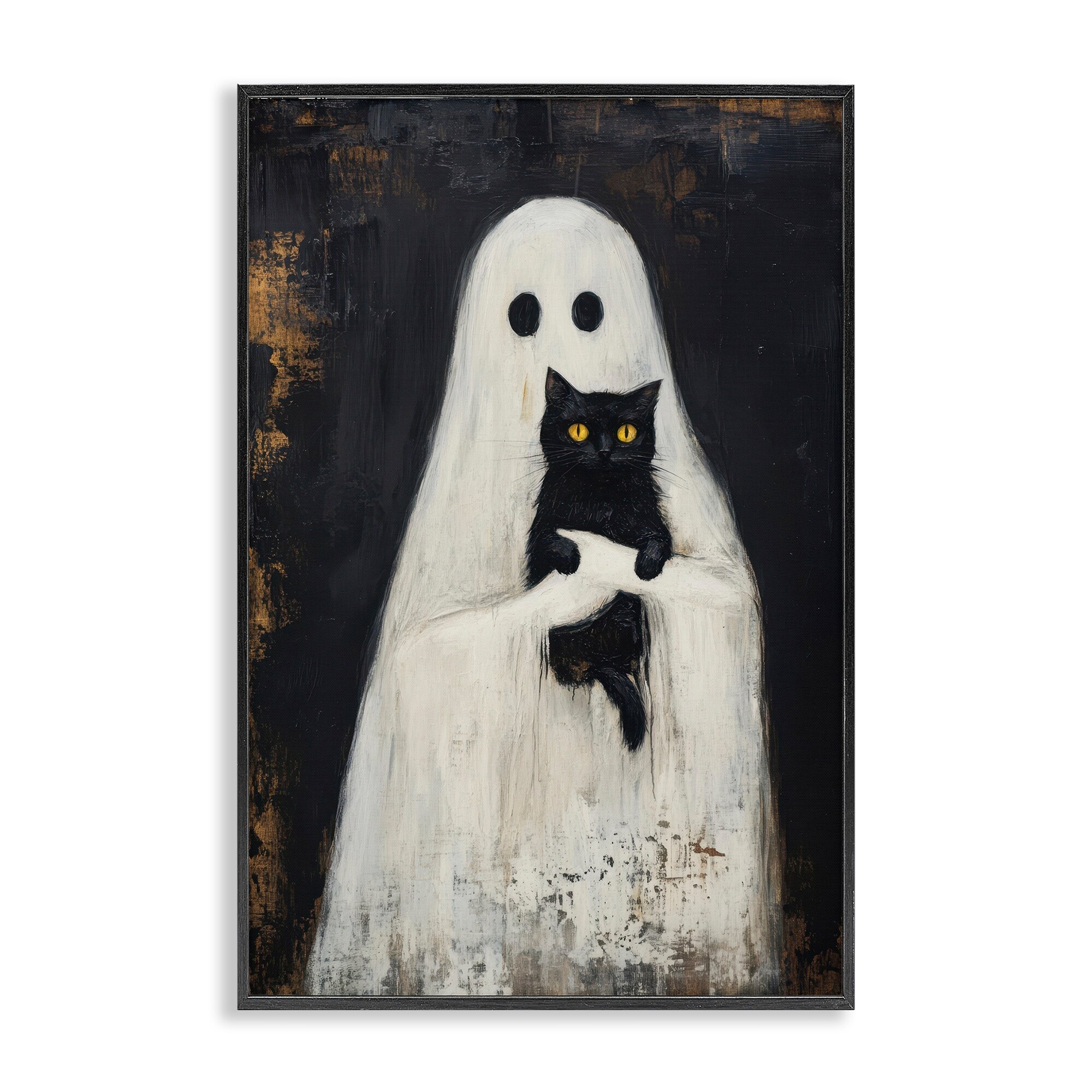 Stupell Black Kitty & Ghost Framed Giclee Art Design By Petal Prints Design