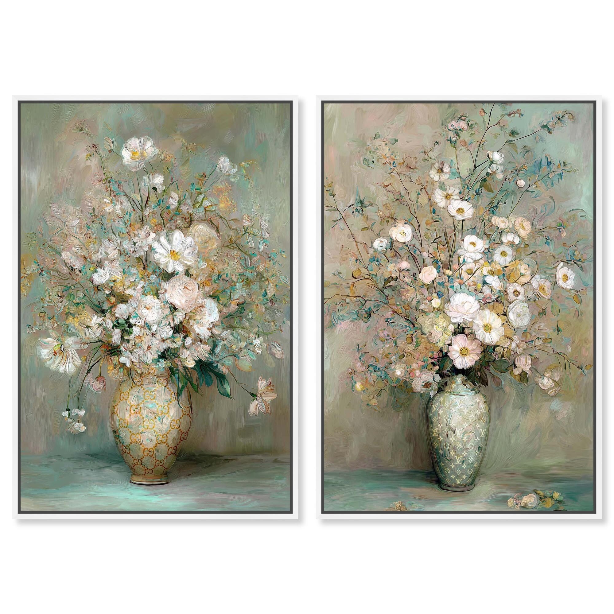 Flowers In Gentle Green Bloom Set Canvas Print By Remedy