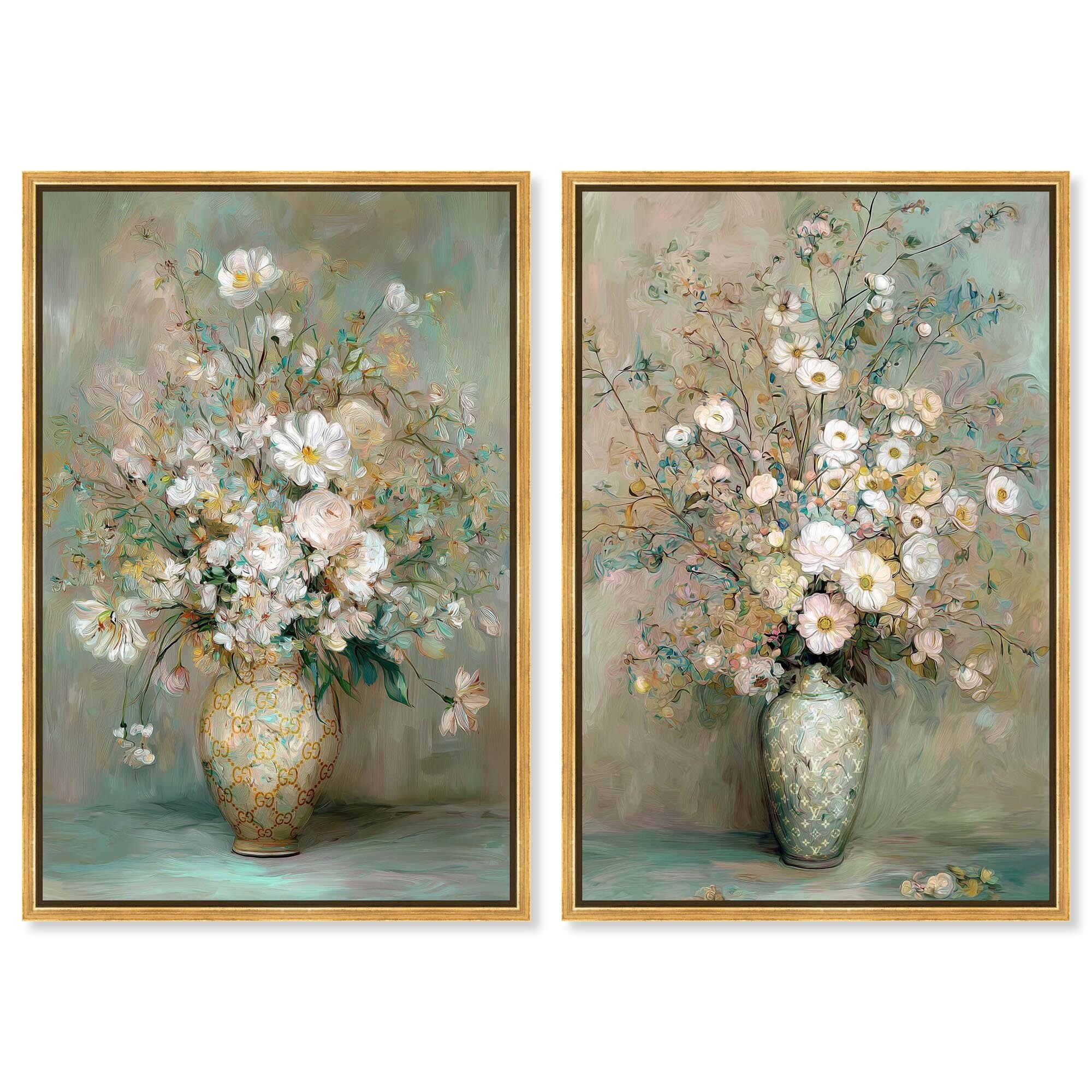 Flowers In Gentle Green Bloom Set Canvas Print By Remedy