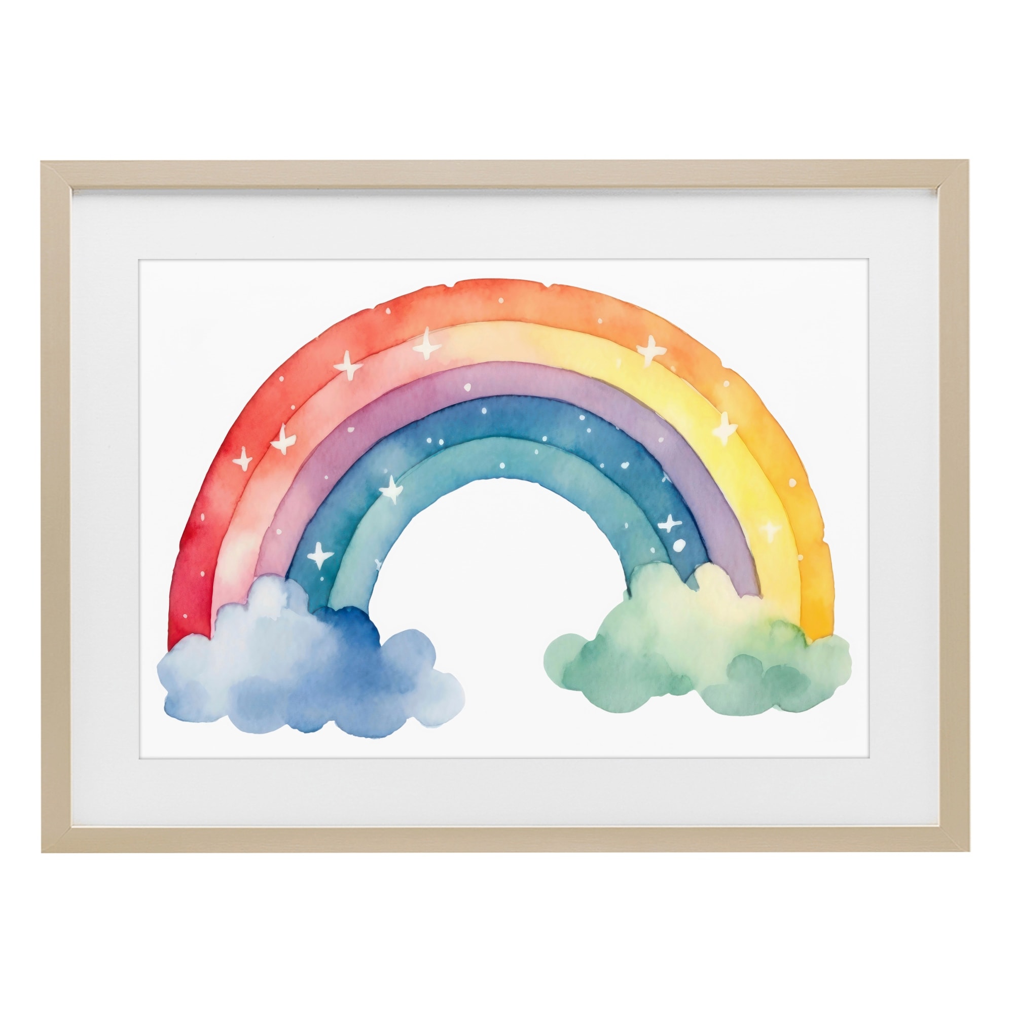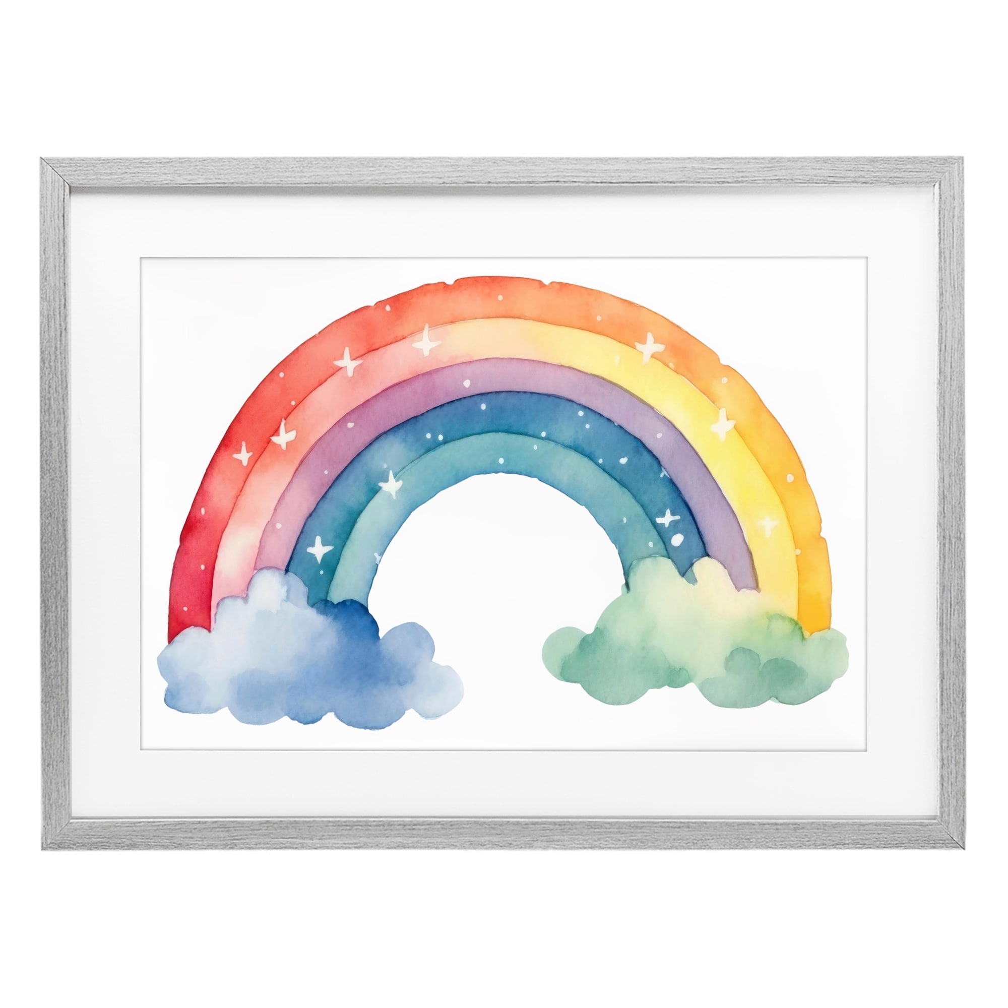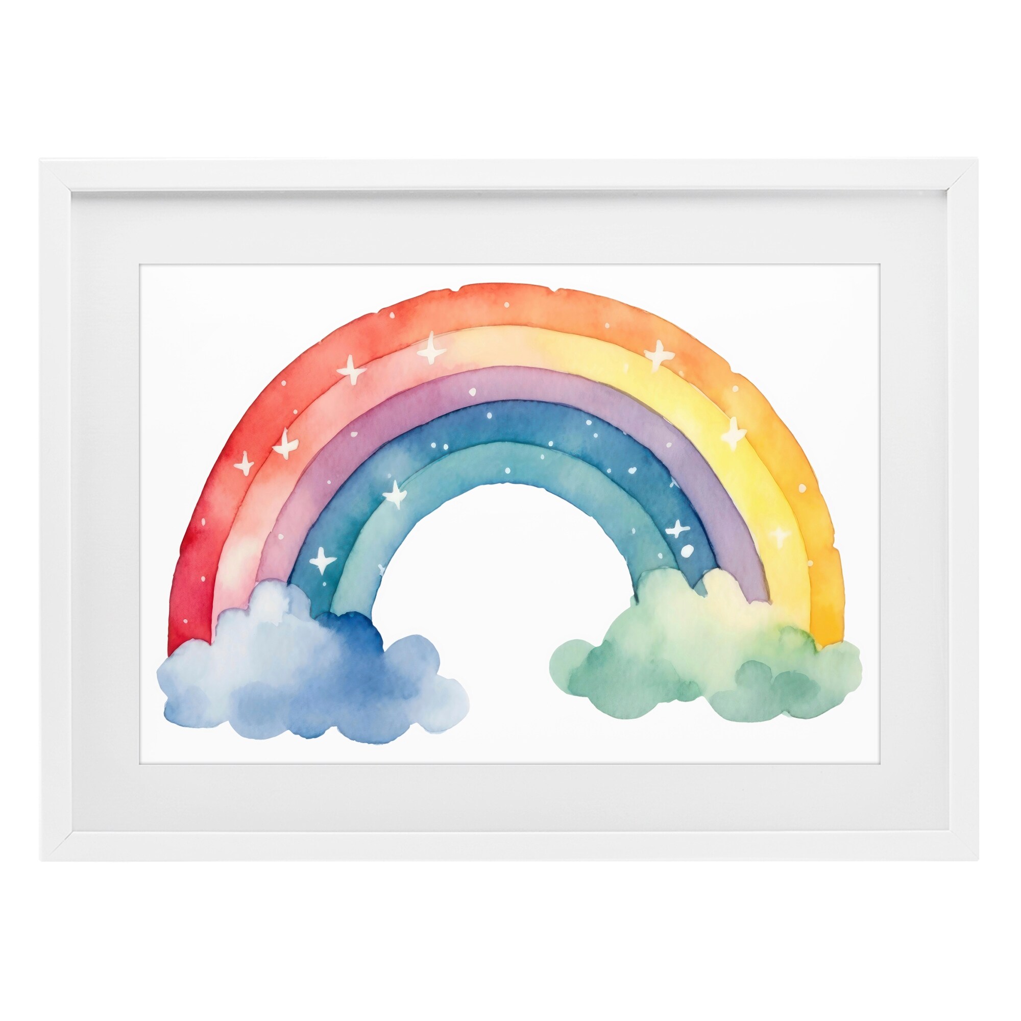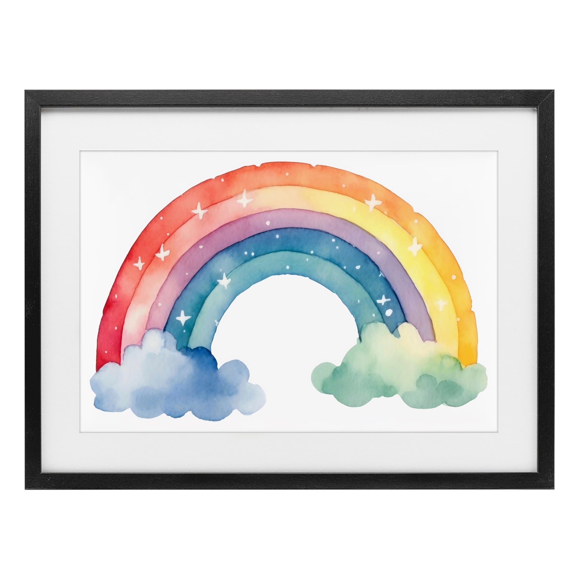 Stupell Colorful Rainbow with White Stars Under Glass Framed Design By Creative Studio