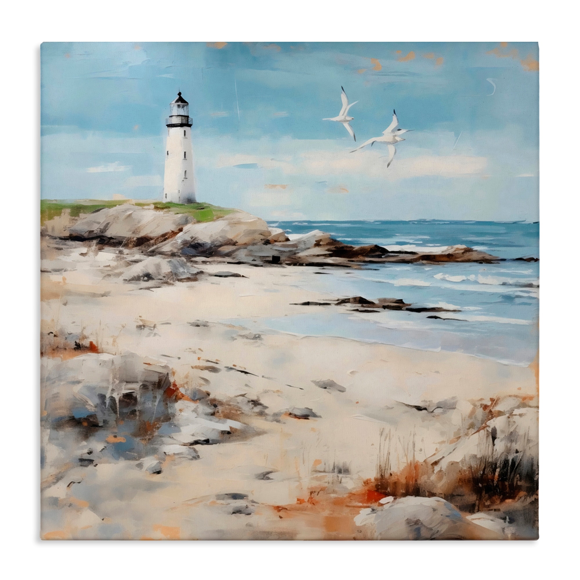 Stupell Lighthouse On Rocky Shore Canvas Wall Art Design By LSR Creative Studio