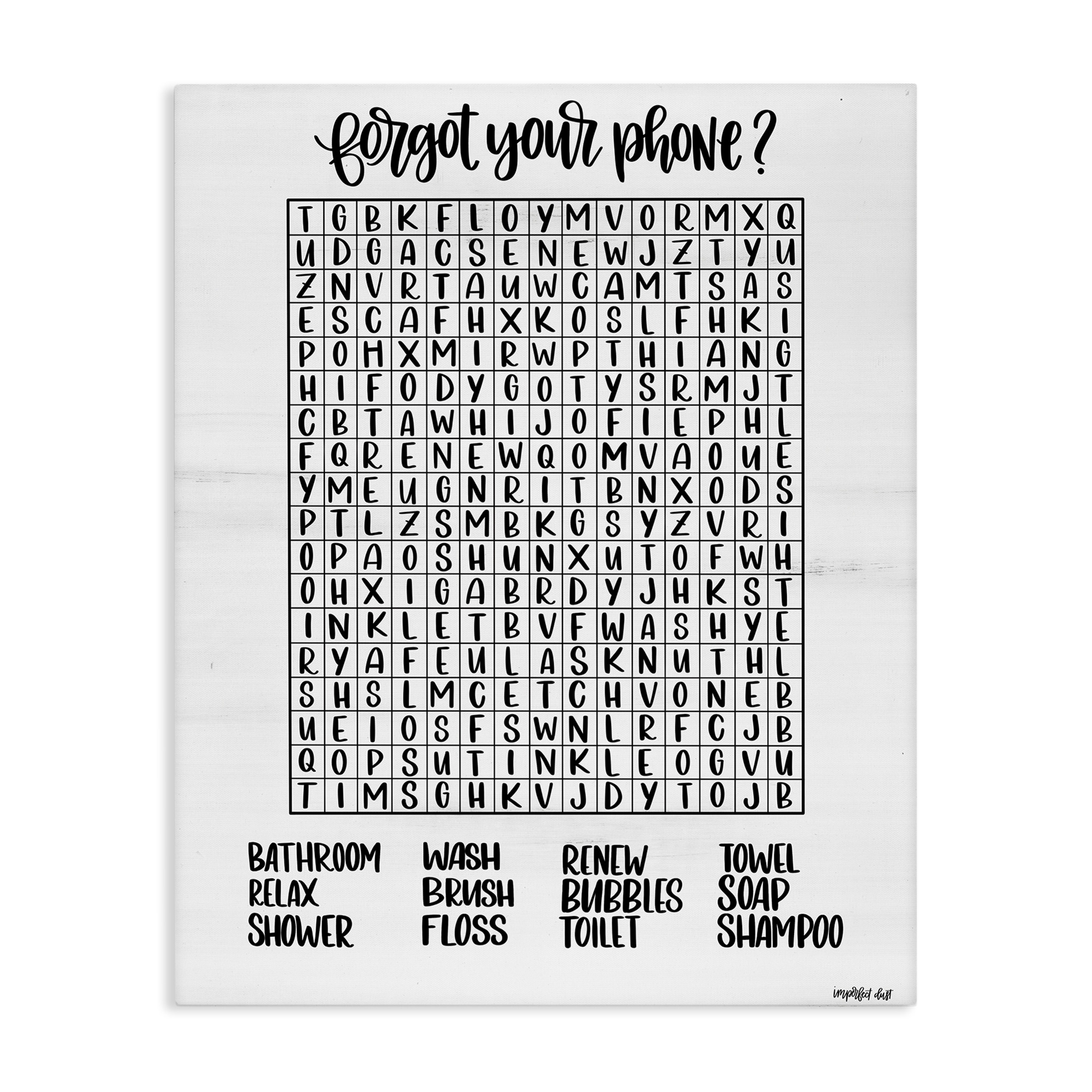 Stupell Forgot Phone Bathroom Wordsearch Canvas Wall Art Design By Imperfect Dust