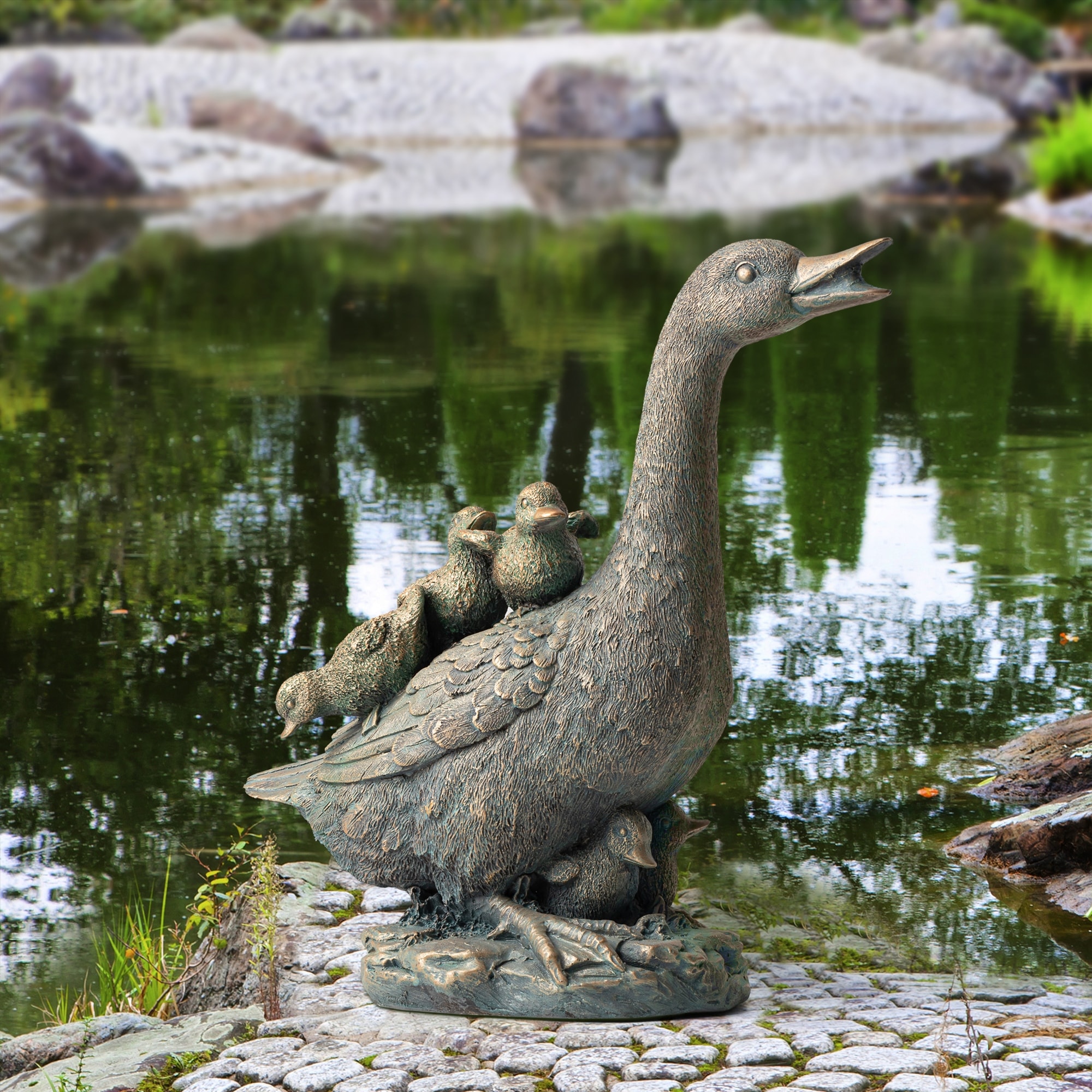 Glitzhome 15"H Resin Faux Bronze Duck Garden Statue Outdoor Decor