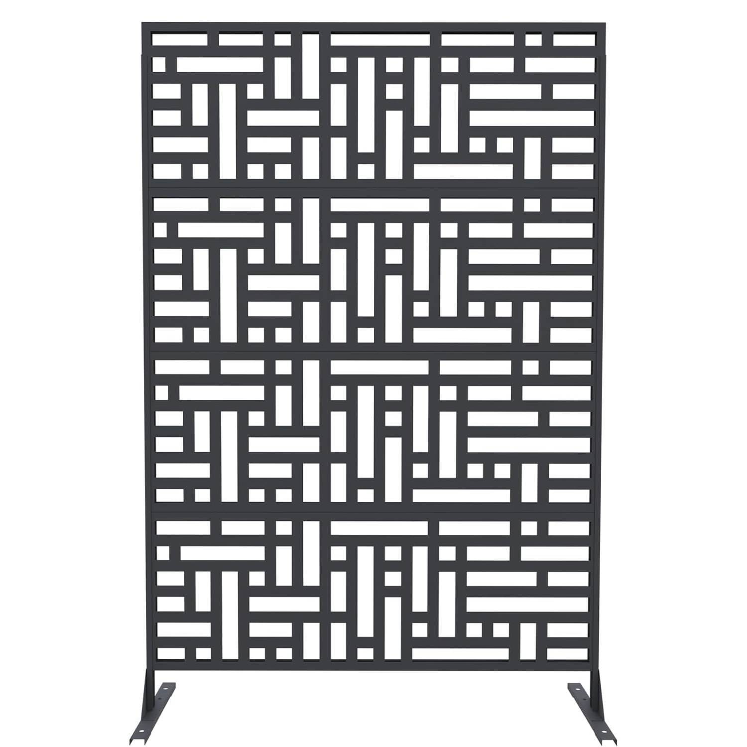 1 Pc Freestanding Decorative Metal Privacy Screen Outdoor with Stand for Balcony, Geometric