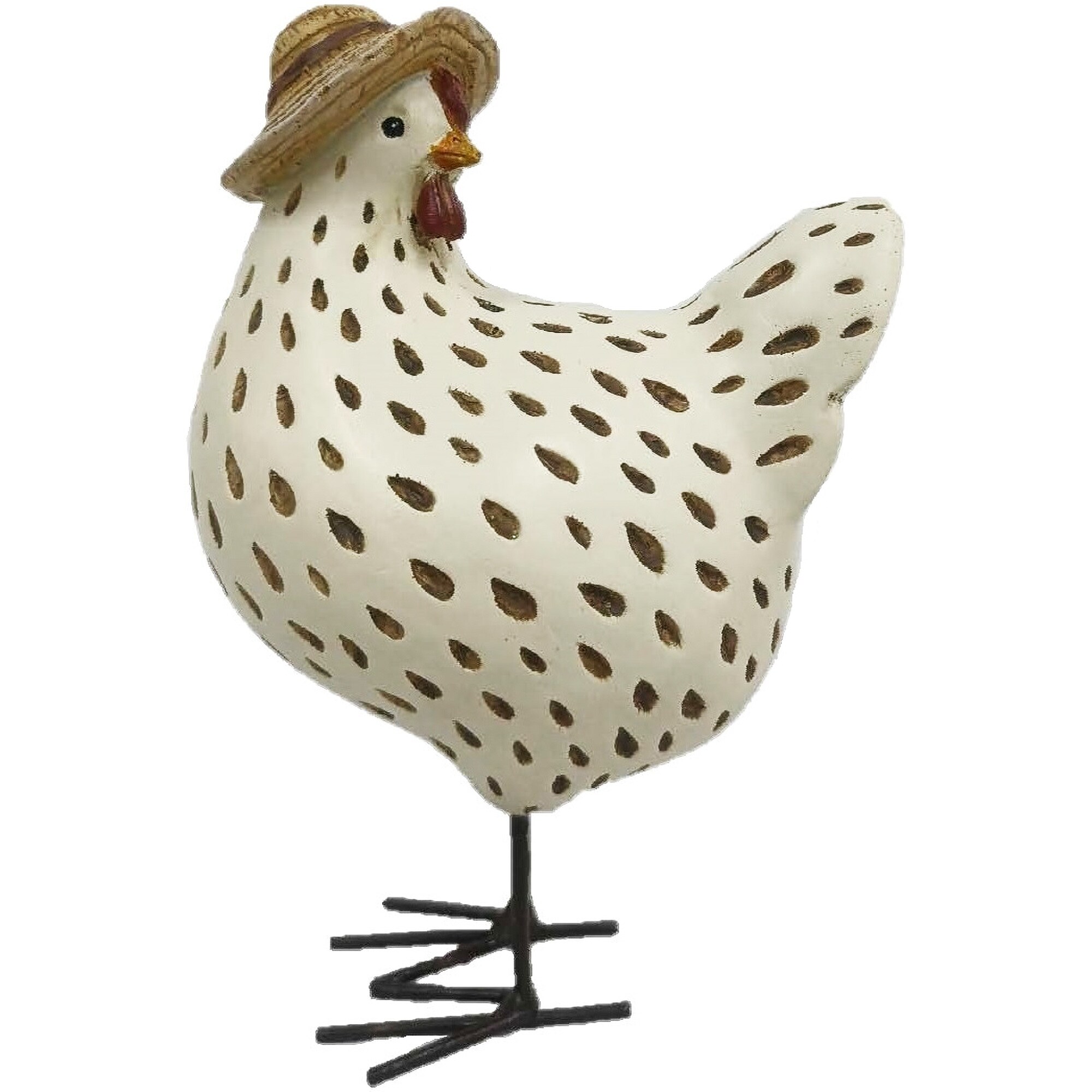 6.3" Resin Hen with Straw Hat