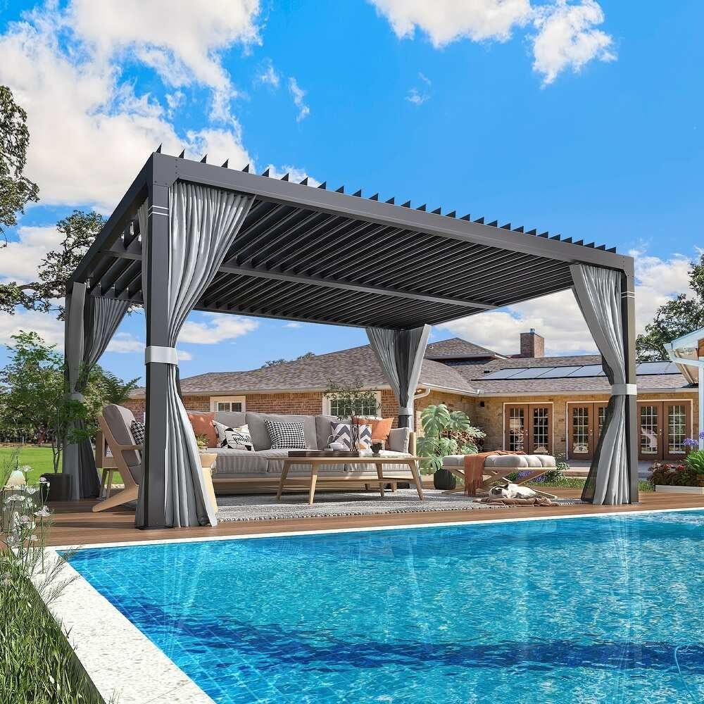 PURPLE LEAF Grey Louvered Pergola Outdoor Aluminum Pergola with Adjustable Roof for Patio Grey Hardtop Gazebo