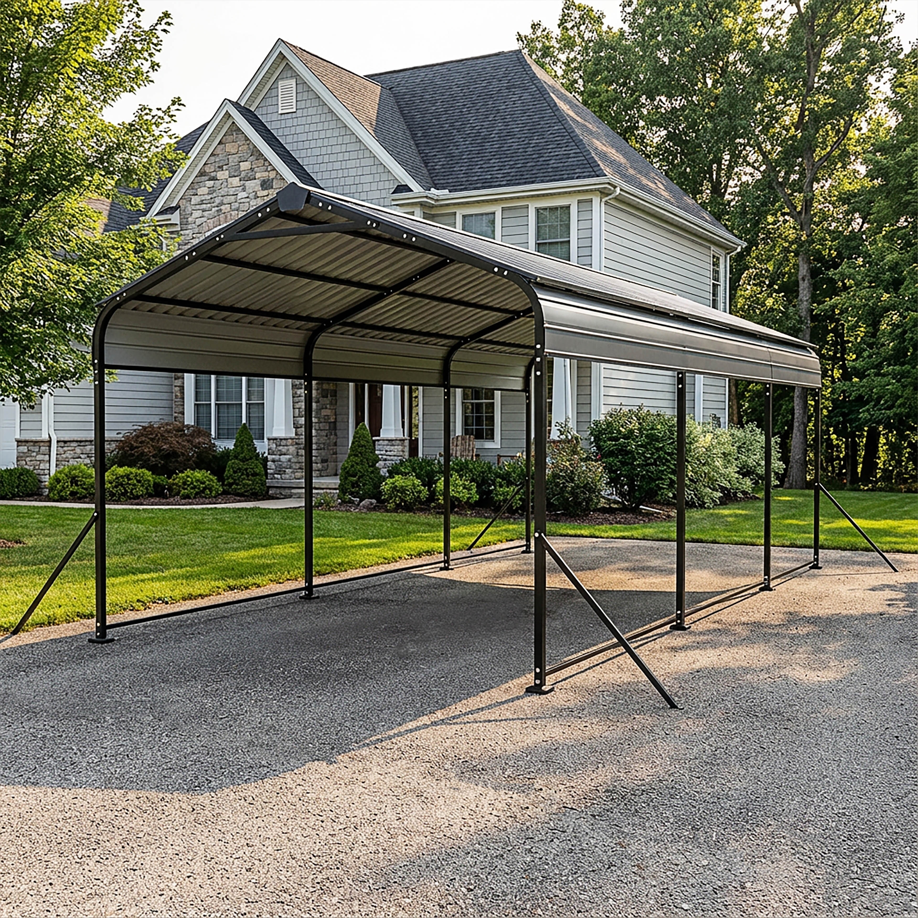 Metal Carport with Reinforced Frame, Windproof Ground Anchors