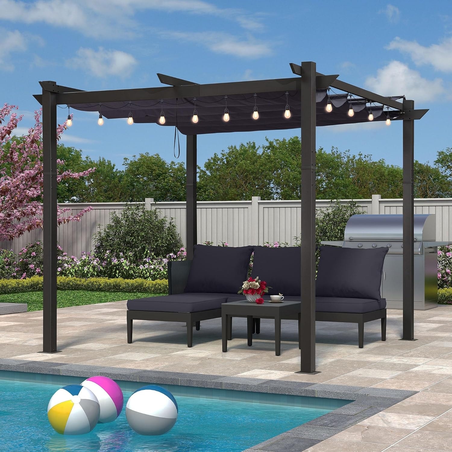 PURPLE LEAF Gazebo Outdoor Retractable Aluminium Grape Trellis Pergola with Extra Top Roof for Patio