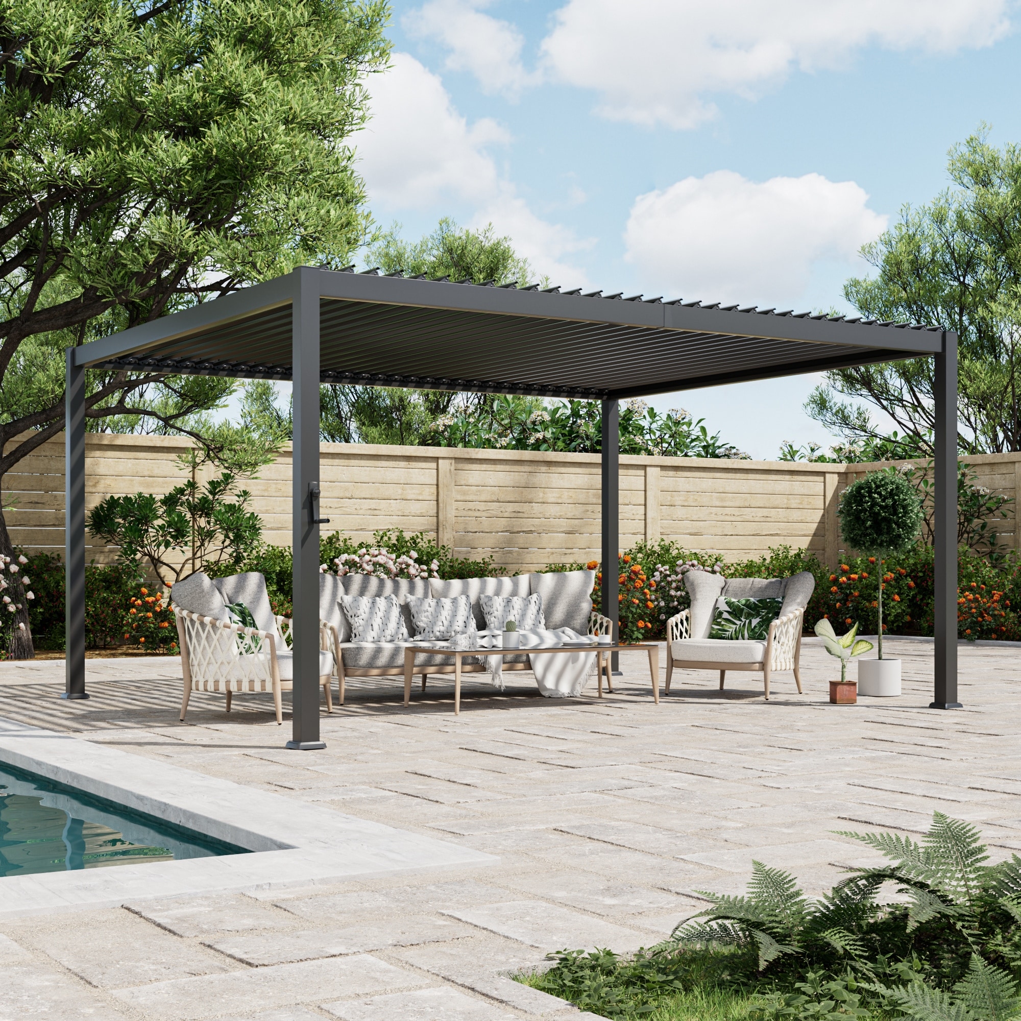 Patio Louvered Pergola with Adjustable Roof, Aluminum Steel Pergola