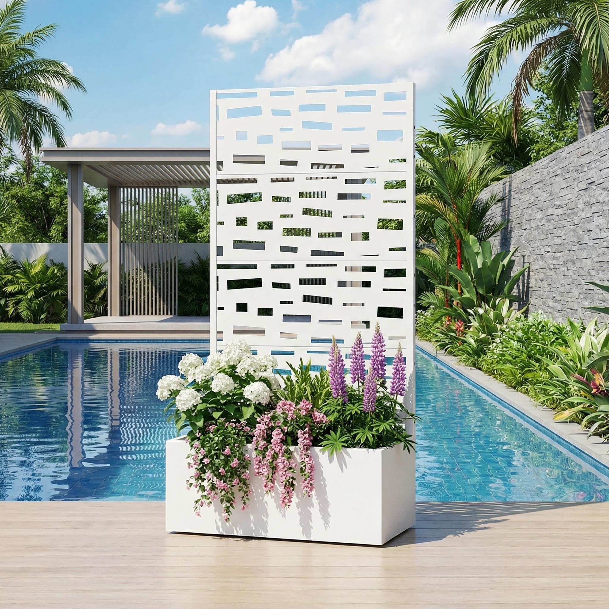 Erommy Wall-Mounted Pergola with Louvered Roof & Pull-Down Screen, Aluminum Awning for Patio or Deck