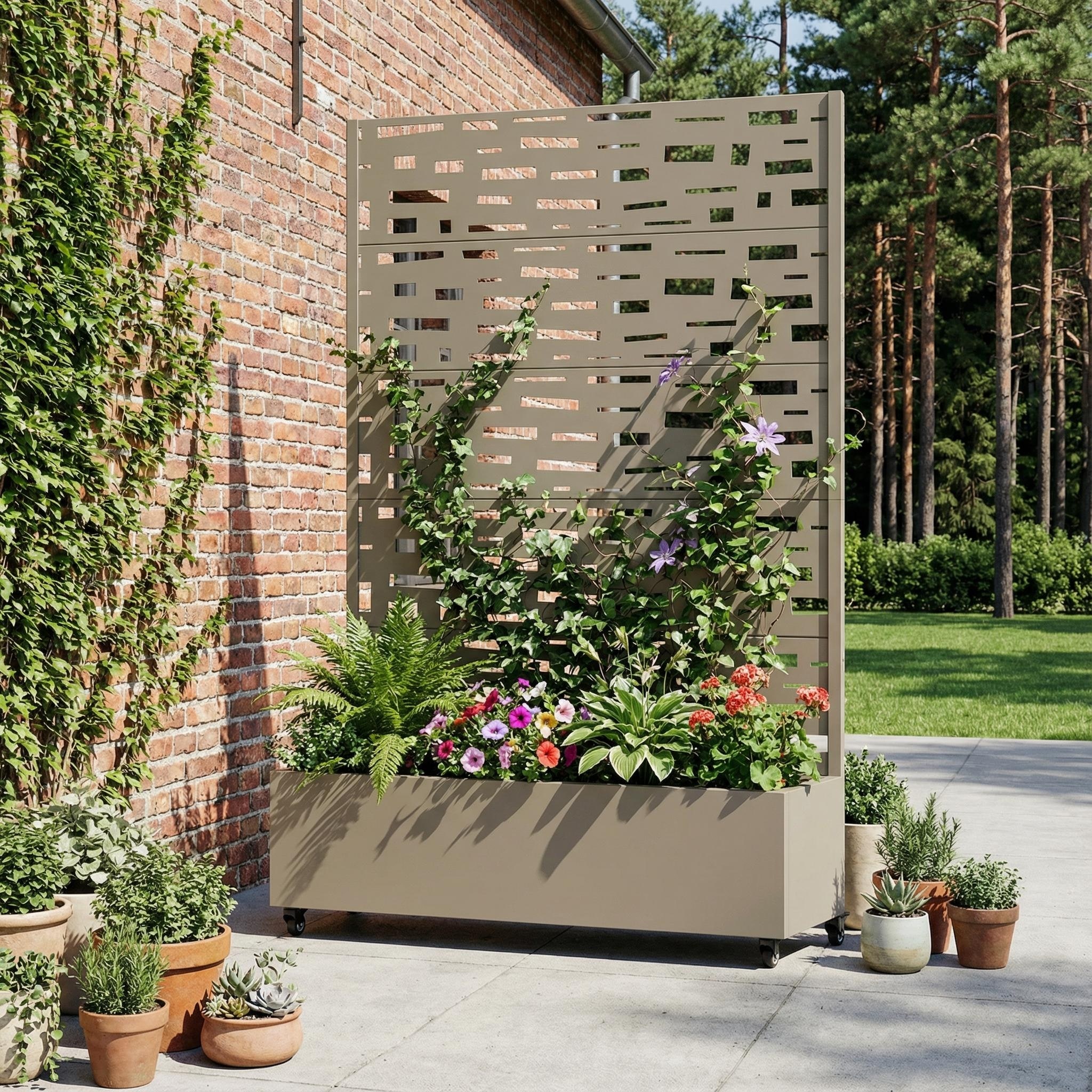 Raised Garden Bed Planter with Trellis Movable Planter Box with Lockable Wheels
