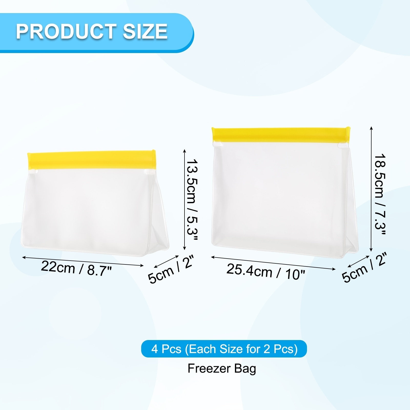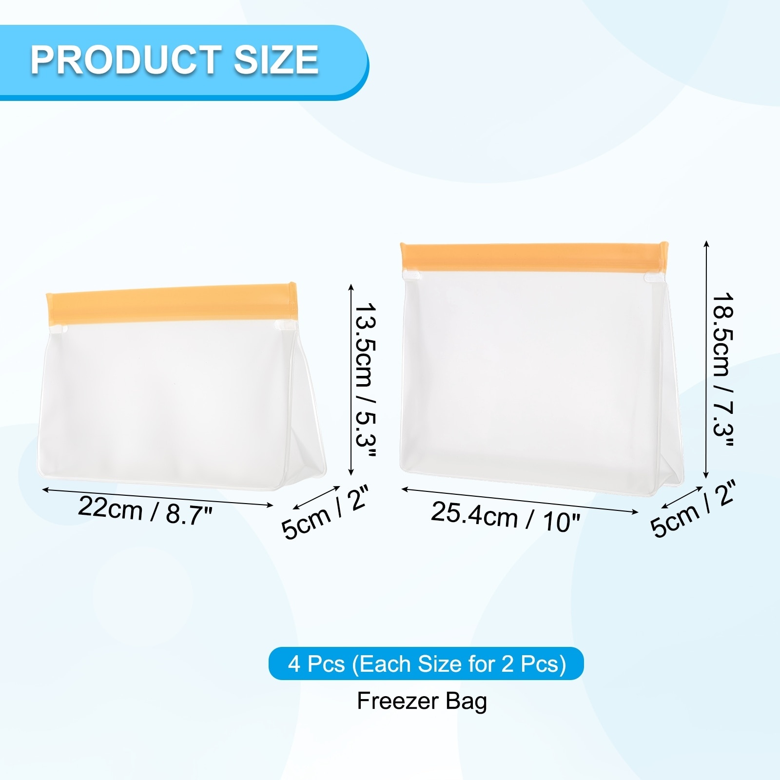 Reusable Freezer Bag, Leakproof Zip Bag - 8.7"x2"x5.3"/ 10"x2"x7.3"