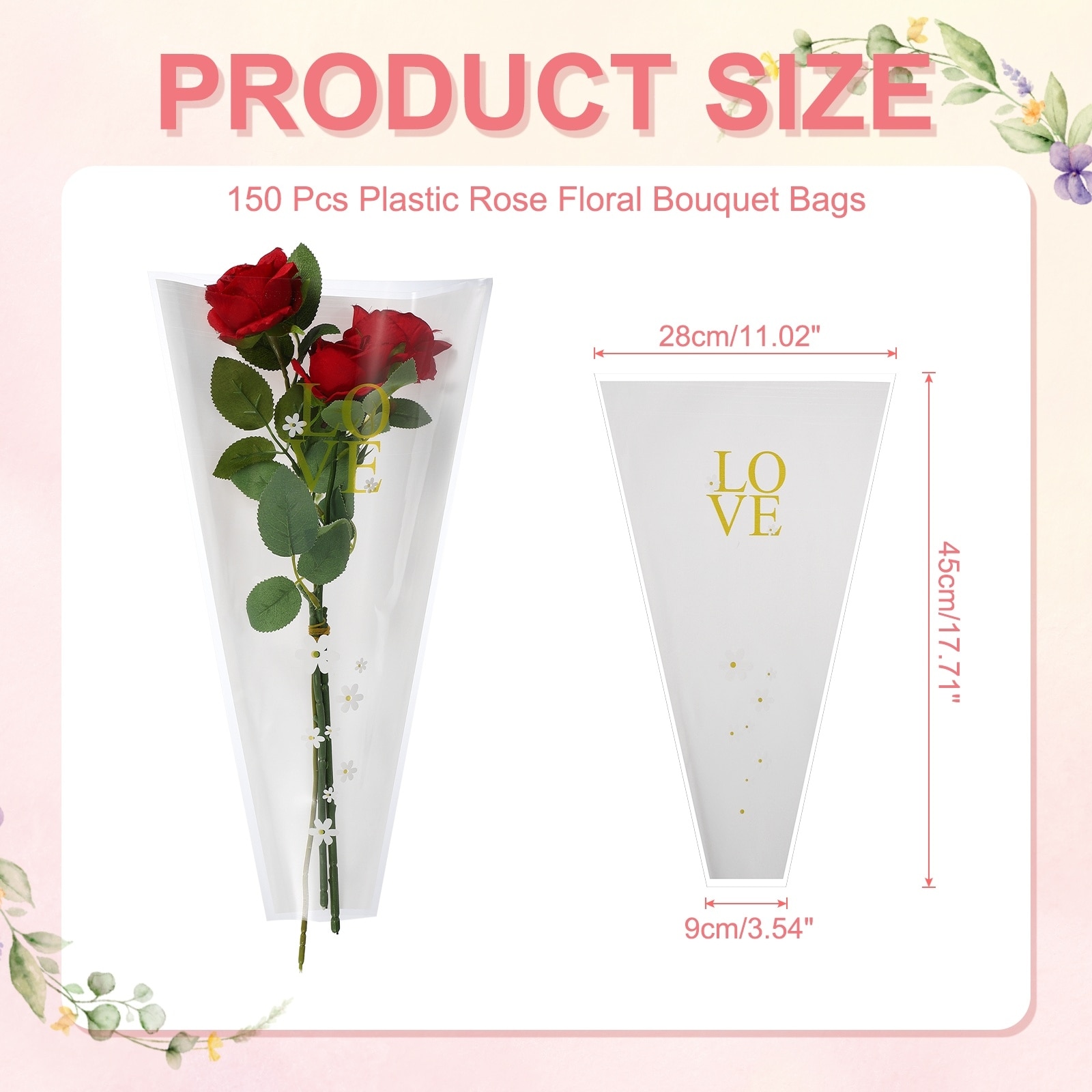 Rose Floral Bouquet Bags Single Flower Sleeves Wrapping Bag for Wedding, Birthday, Retail Packaging - 17.7"