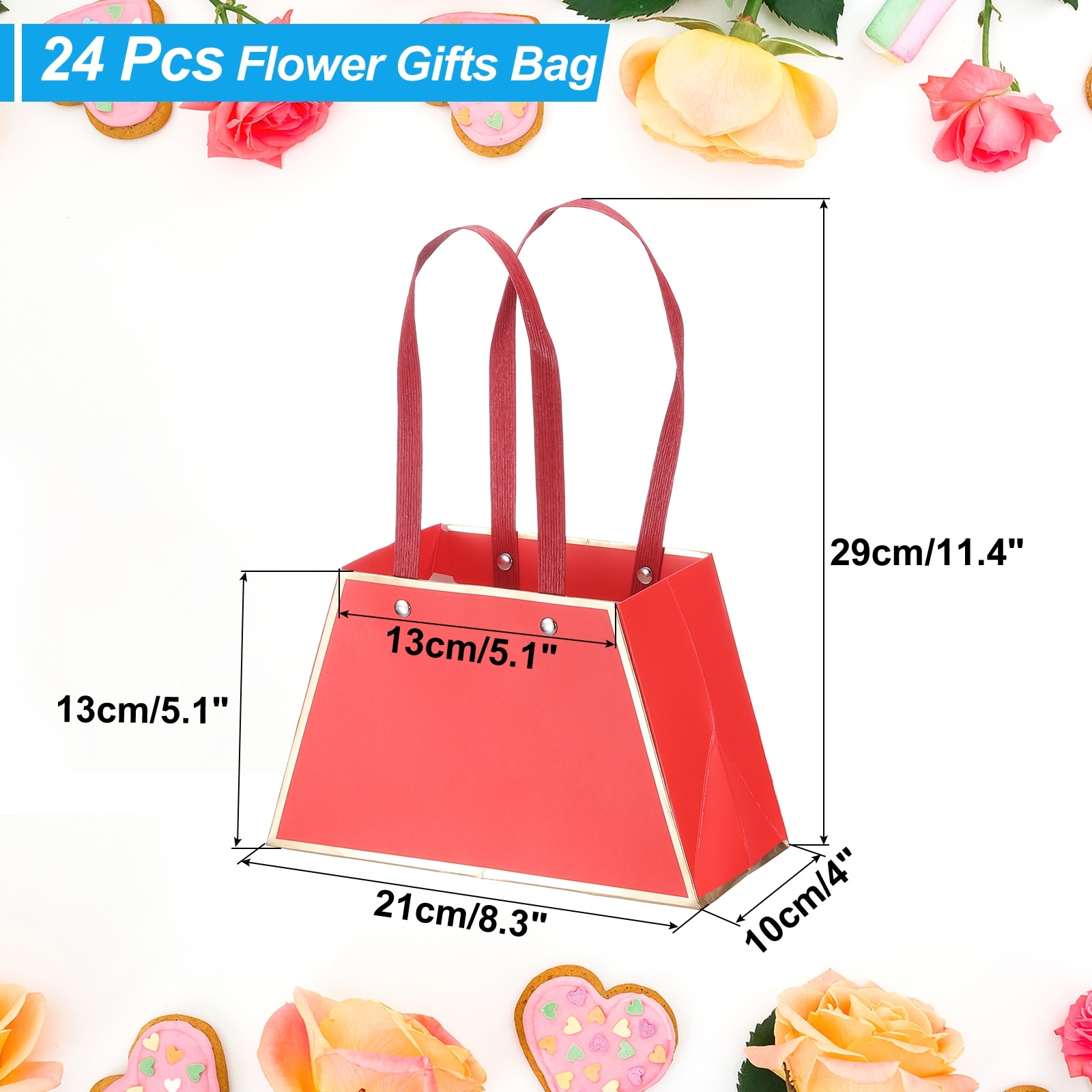 Paper Flower Gift Bags, Paper Bouquet Flower Gift Bag with Handle Rectangle Metal Chain Tote for Florist Wedding Party Birthdays