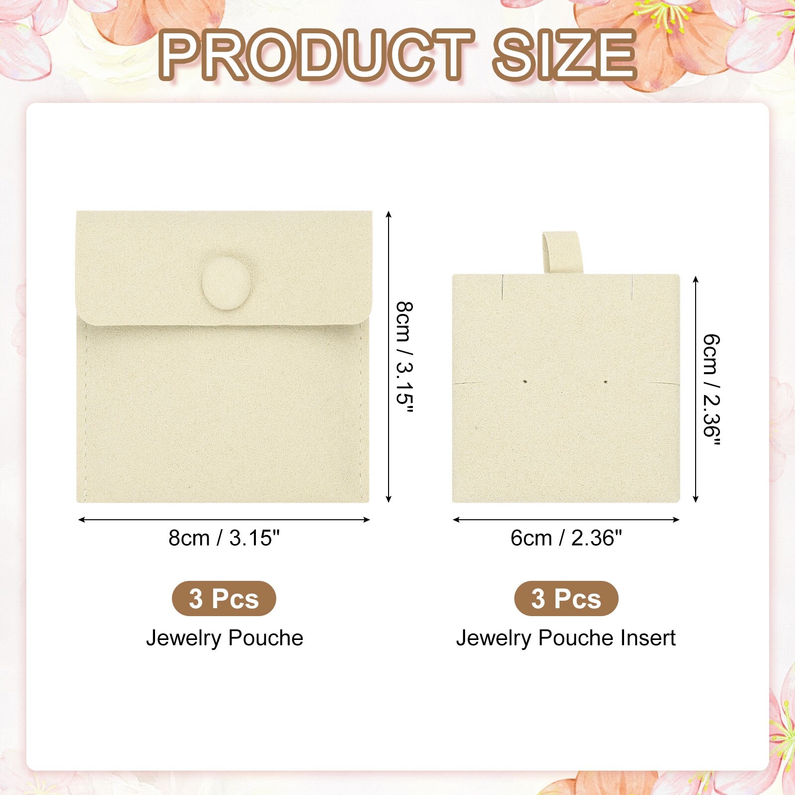 Microfiber Jewelry Pouches, Velvet Jewelry Pouches with Insert Luxury Gift Bag for Storing Ring Necklaces - 8 x 8 cm