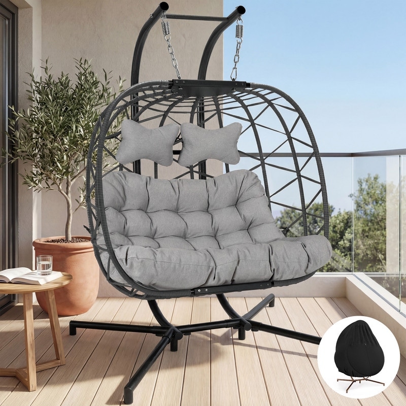 Oversized Outdoor Double Swing Egg Chair, 700 lbs Capacity 2-Person Hanging Egg Chair Swing with Cushion
